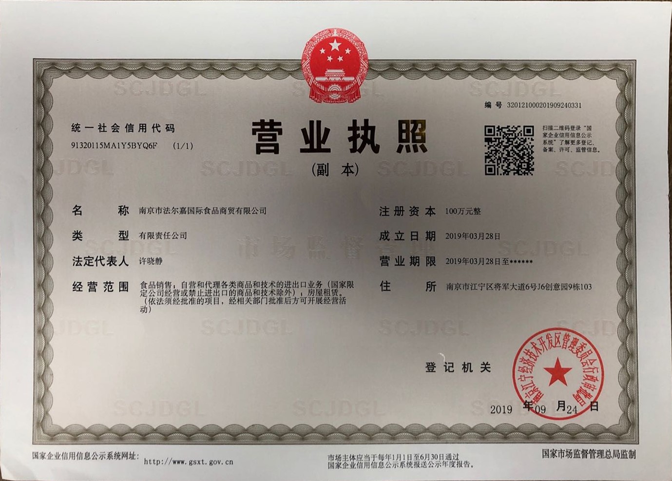 - 經(jīng)營范圍:食品銷售;自營和代理各類商品和技術(shù)的進出口業(yè)務(國家限定公司經(jīng)營或禁止進出口的商品和技術(shù)除外),房屋租賃(依法須經(jīng)批準后方可開展經(jīng)營活動)