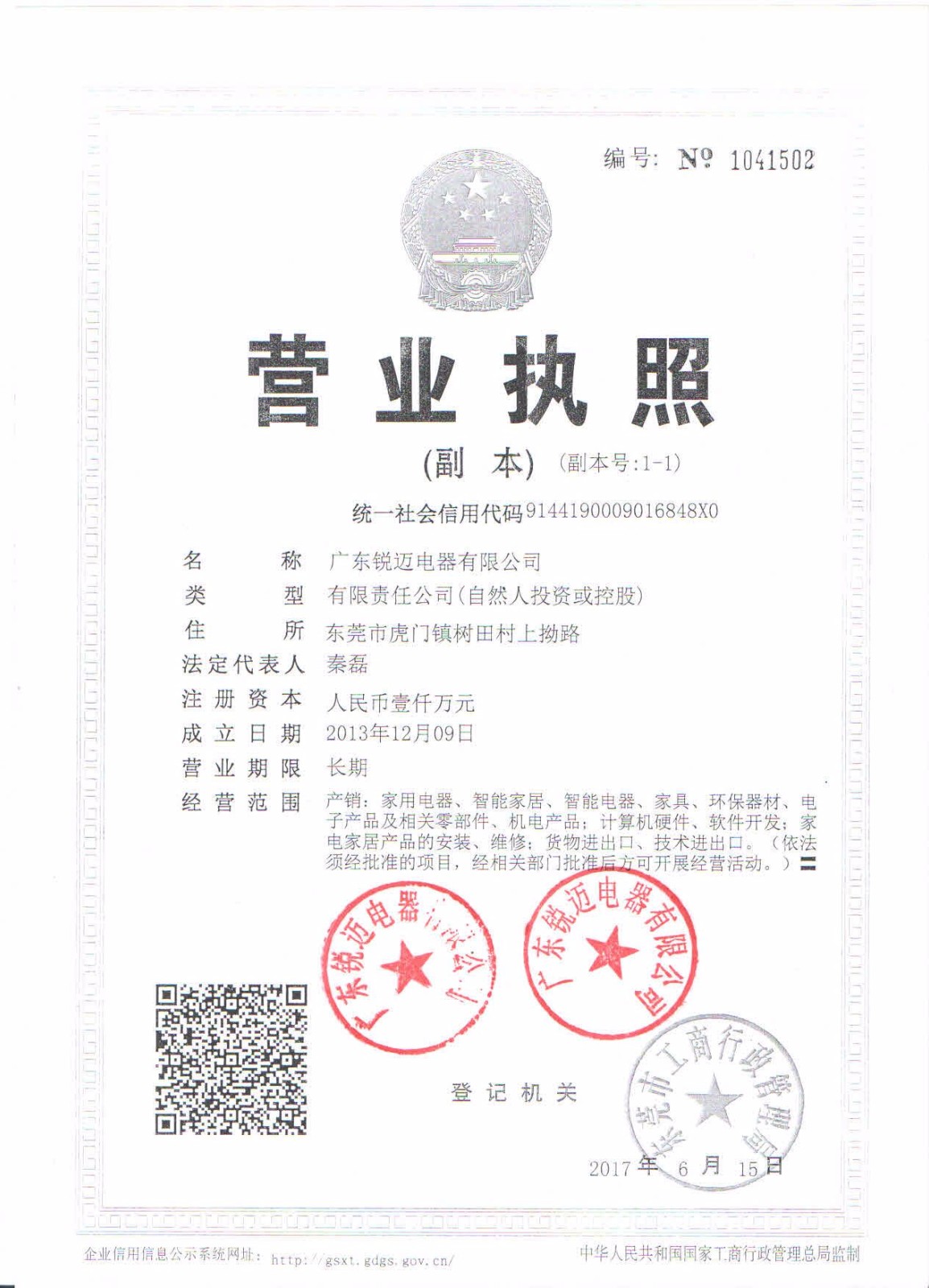 - 經營范圍:產銷:家用電器、智能家居、智能電器、家具、環保器材、電子產品及相關零部件、機電產品;計算機硬件、軟件開發;家電家居產品的安裝