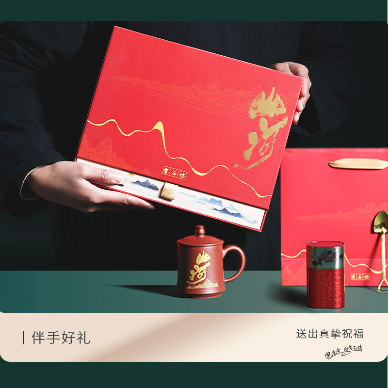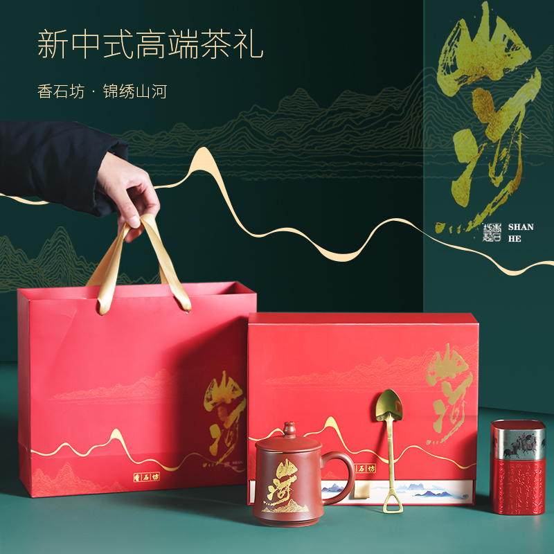 香石坊 宜興紫砂杯茶具禮,經典的中國紅色系包裝,正宗原礦紫砂杯,宜興中小葉紅茶,一體沖壓成型茶匙,經典中國茶,精致東方禮