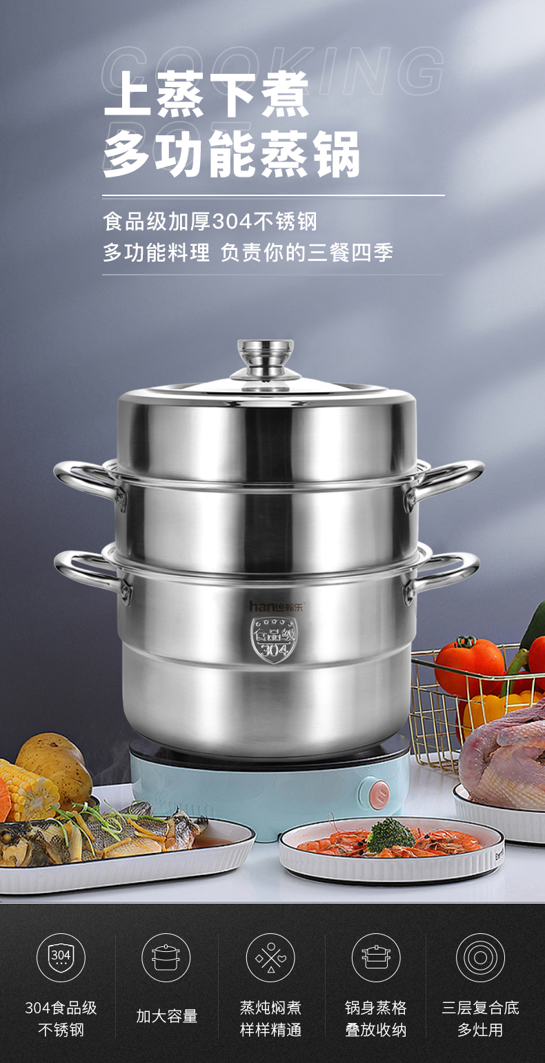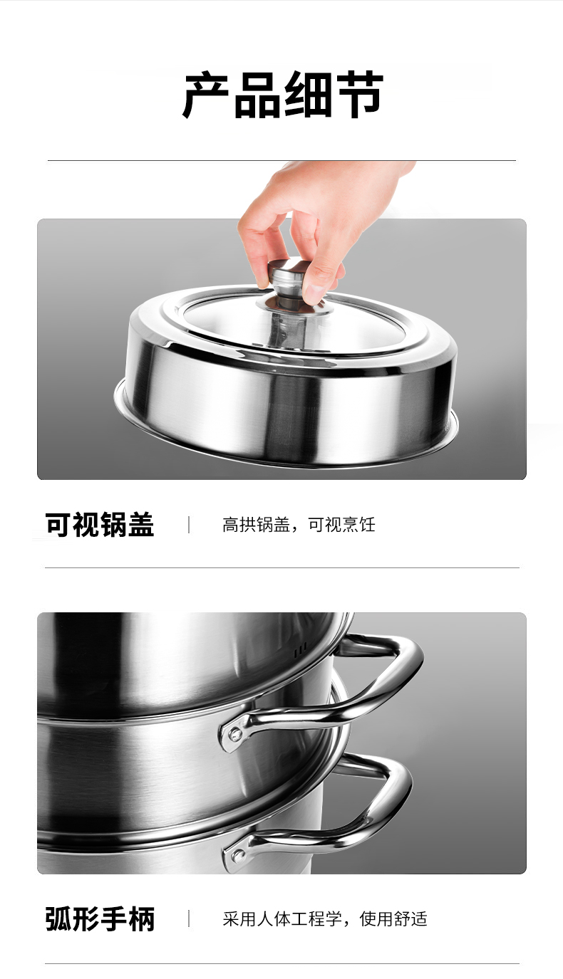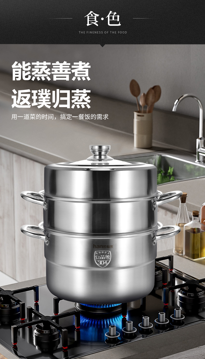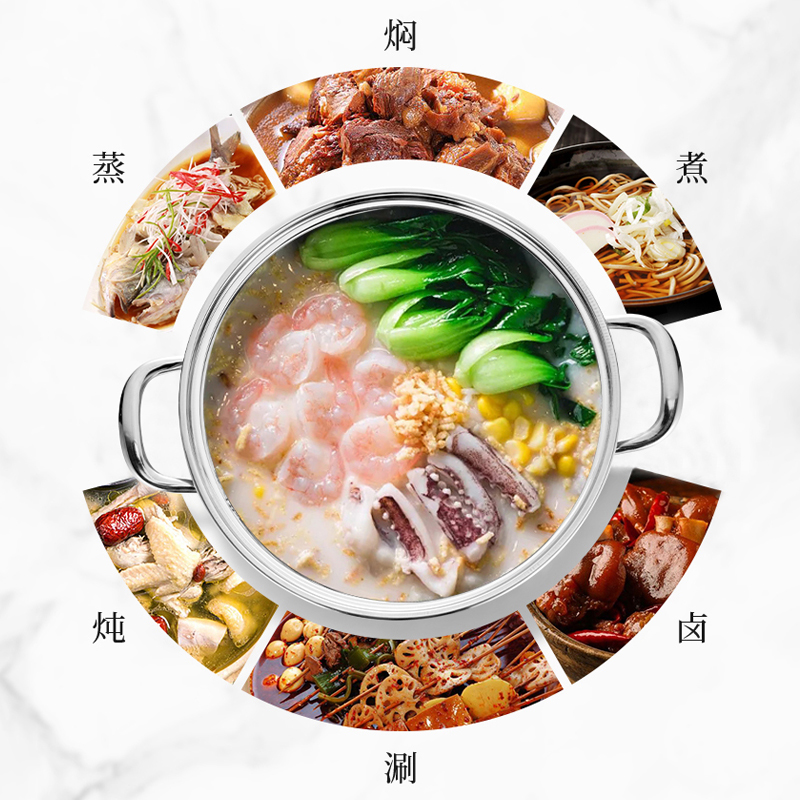 食品級不銹鋼材質,耐用不生銹,一鍋多功能蒸煮涮火鍋,秒變廚神