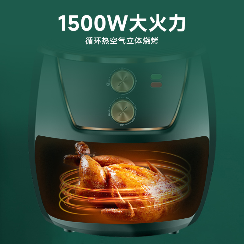 內鍋采用陶瓷處理,采用360度熱空氣循環,上下雙風扇,360度熱能包裹,多功能低脂高溫速炸,無油無煙,大容量,保留油炸口感