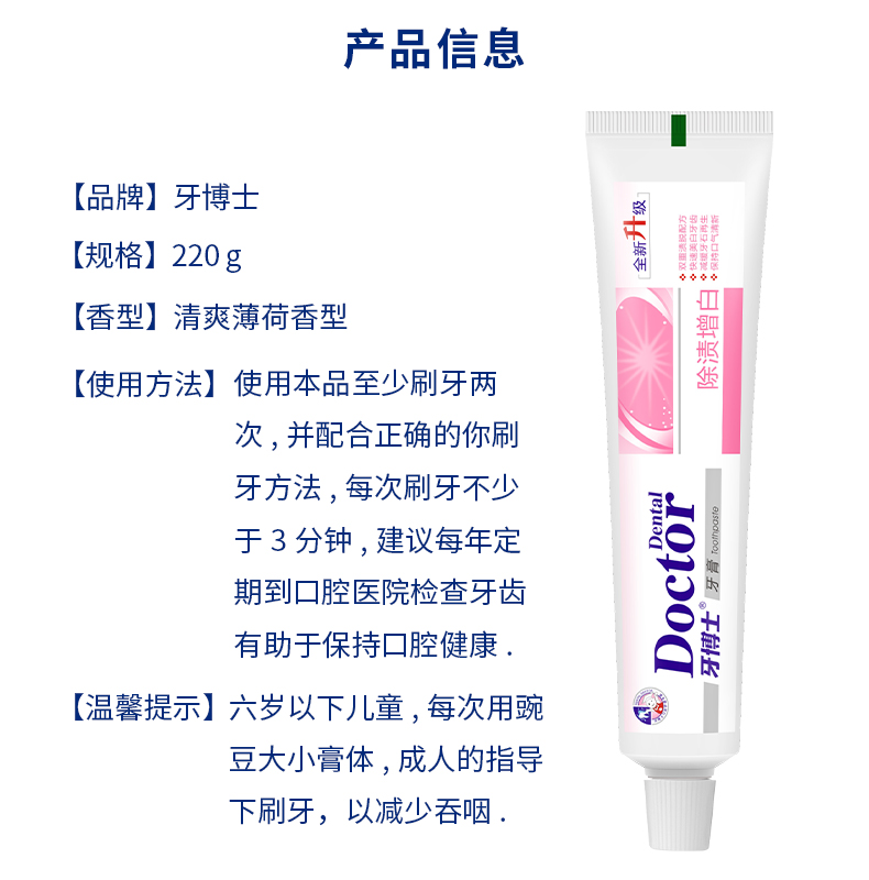 牙博士除漬增白牙膏220g