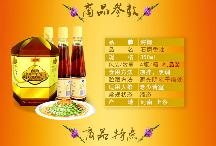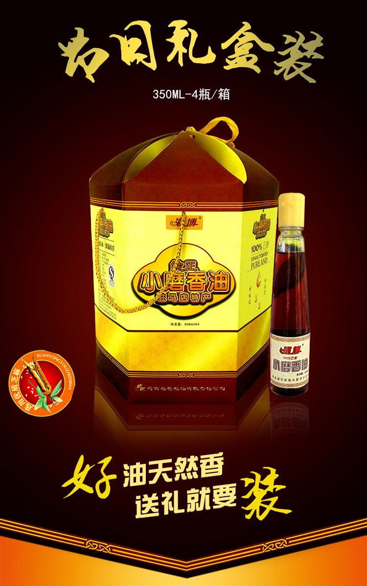 盛世禮盒 石磨小磨香油食用植物油調(diào)味芝麻油320ml*4