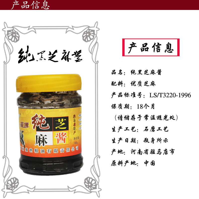 純黑芝麻醬河南特產熱干面火鍋蘸醬正宗黑芝麻醬180g招商代理