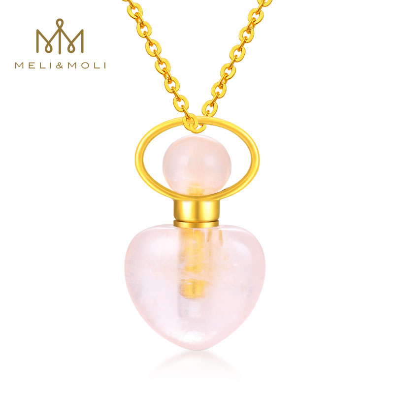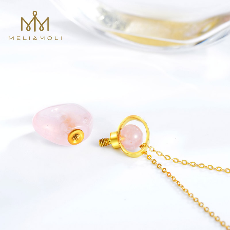 MELI MOLI 粉水晶精油瓶吊墜招桃花 天然香水瓶S925銀項鏈送女友
