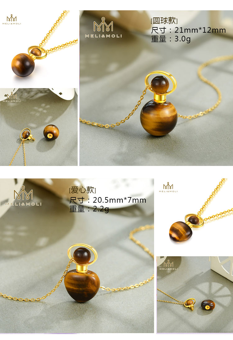 天然黃虎眼石精油寶瓶吊墜 迷你虎睛香氛水晶掛件配金色925銀項鏈