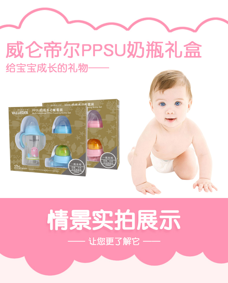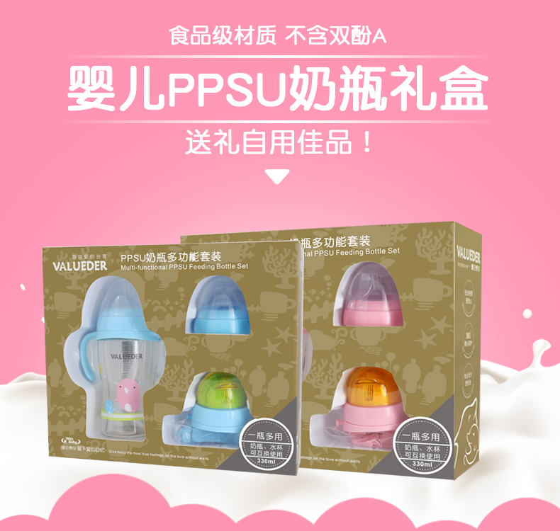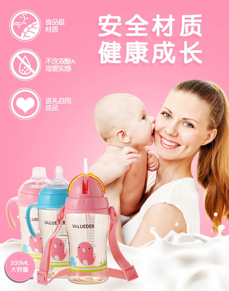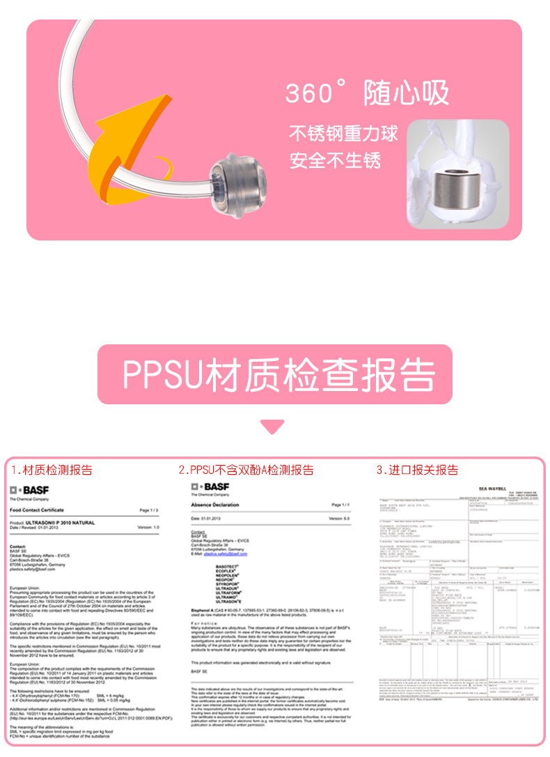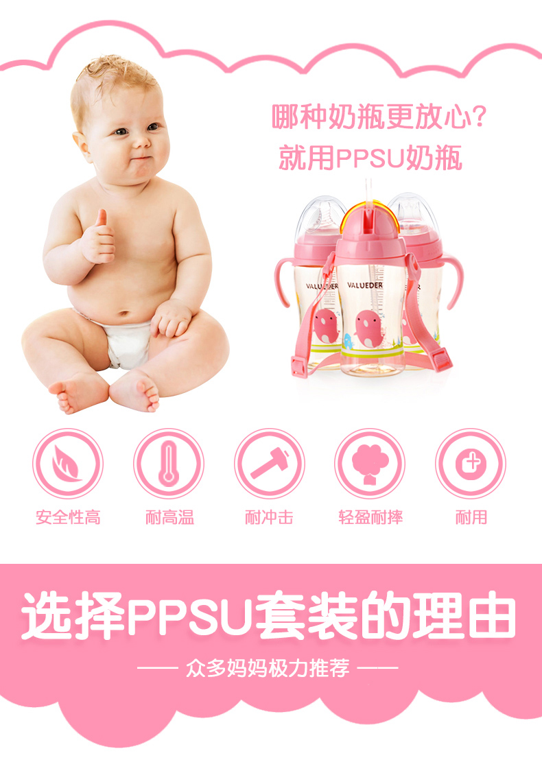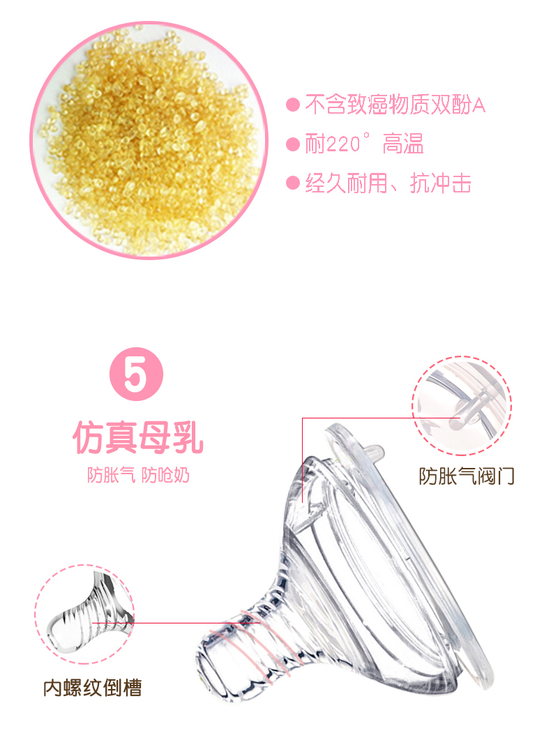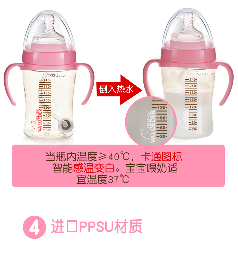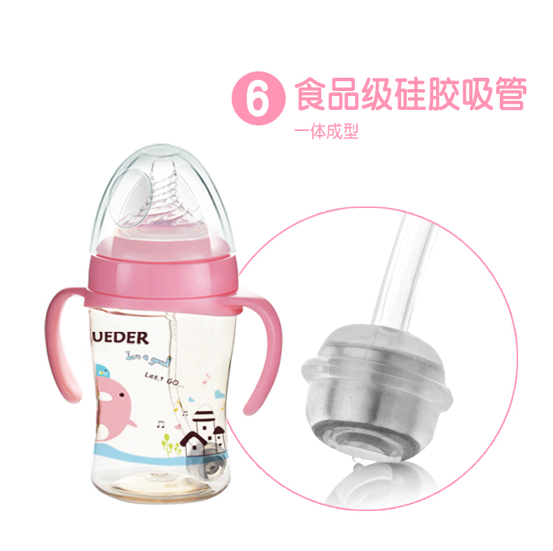 2、PPSU瓶身,不含致癌物質雙酚A,經久耐用,抗沖擊,輕盈耐摔,瓶口加厚,方便加奶粉