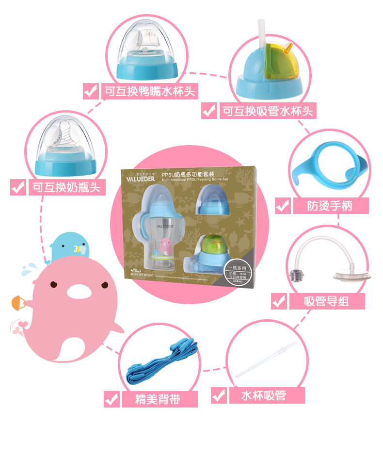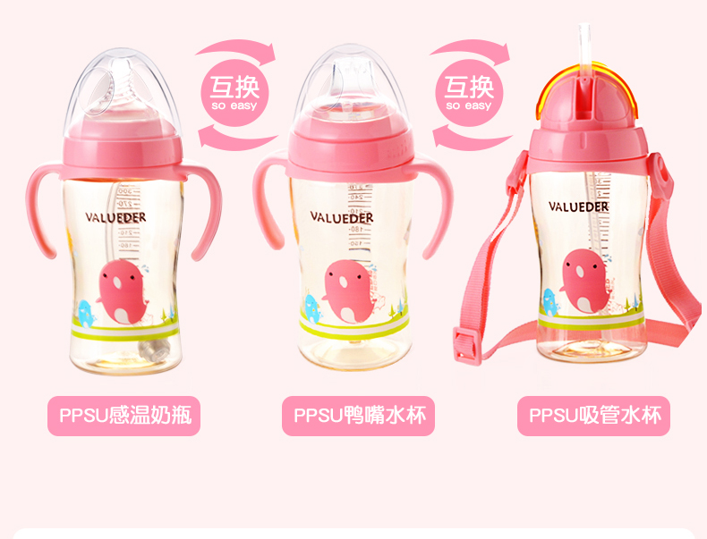1、瓶3用,PPSU感溫奶瓶,鴨嘴水杯,吸管水杯,360°無死角硅膠可吸管,安全方便