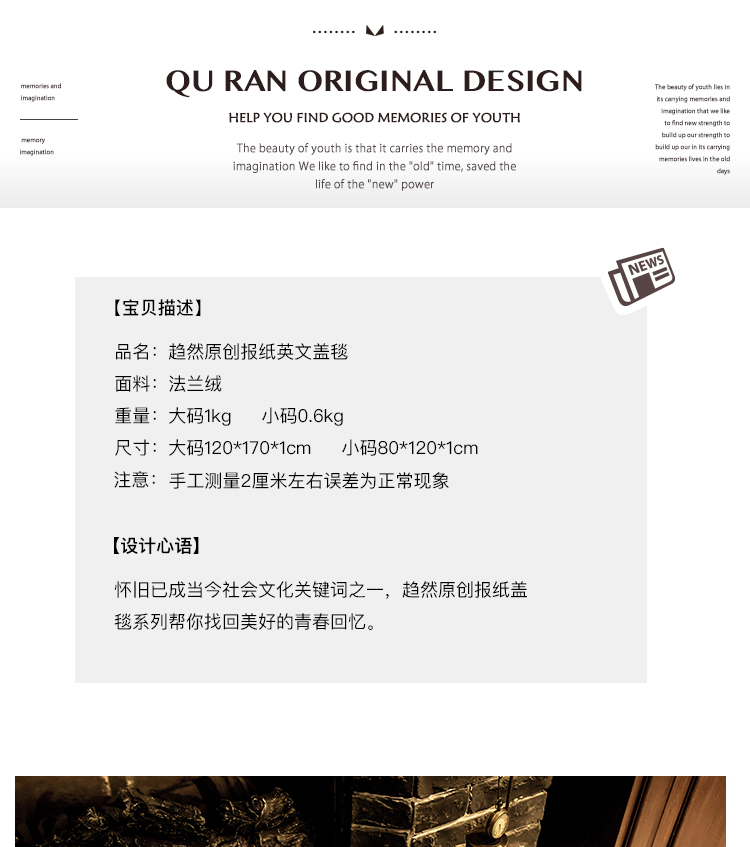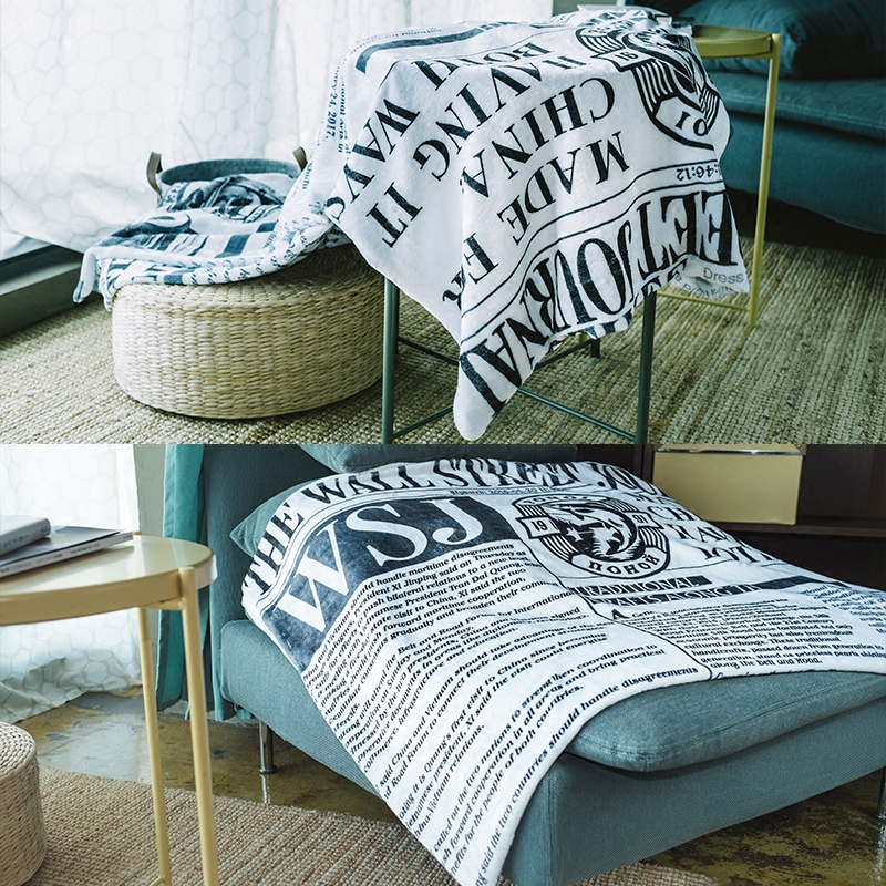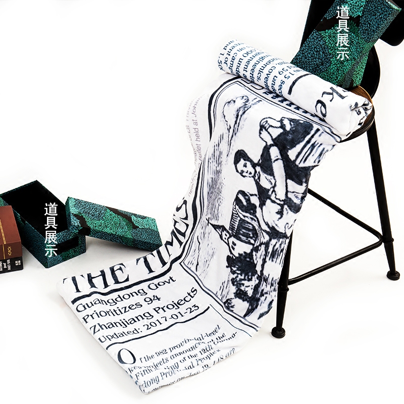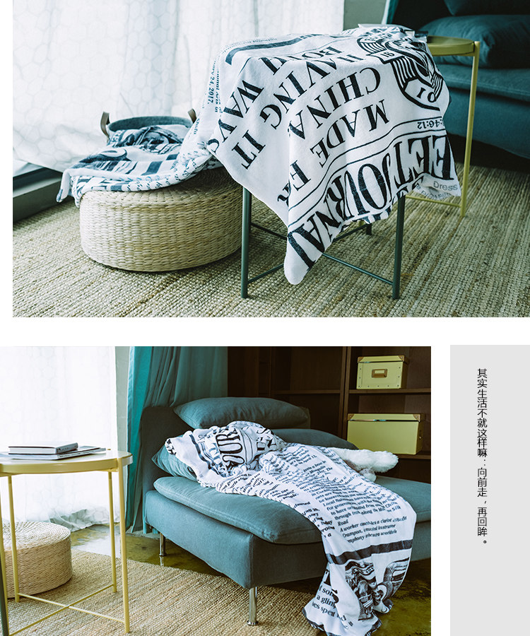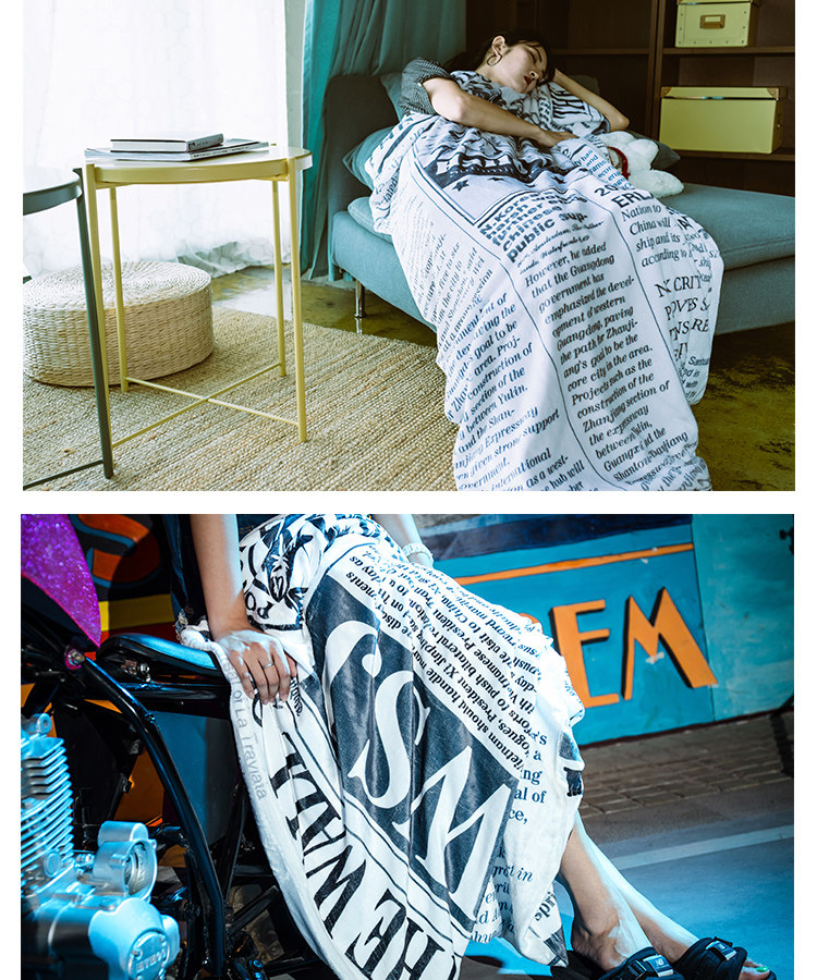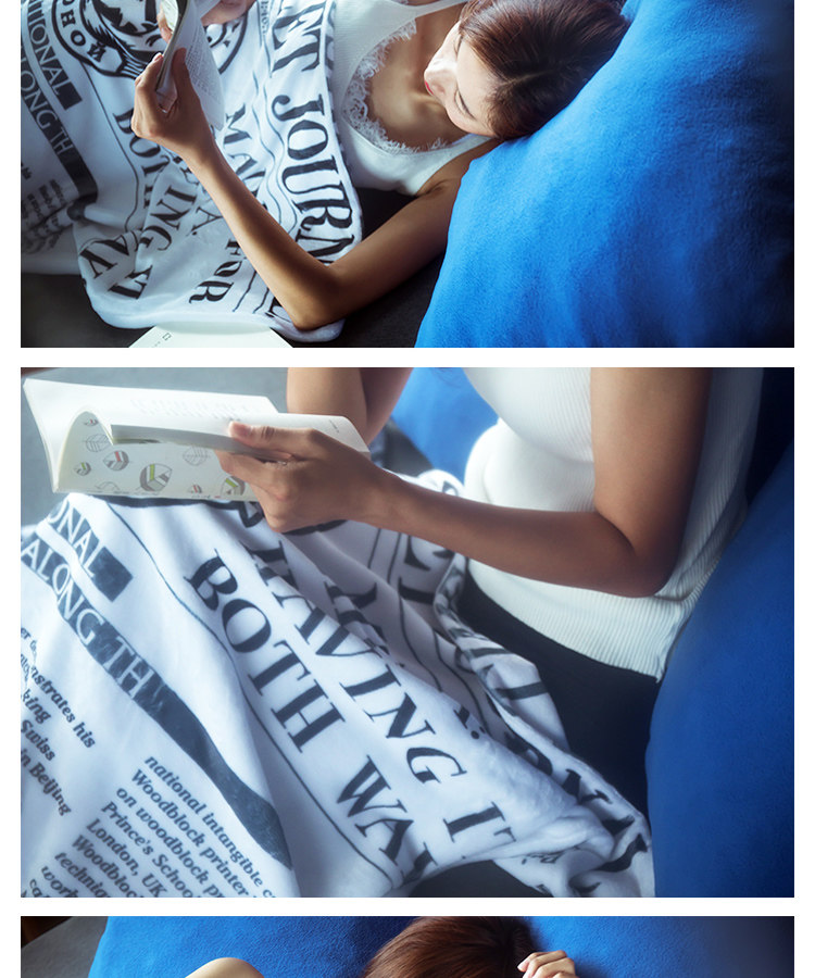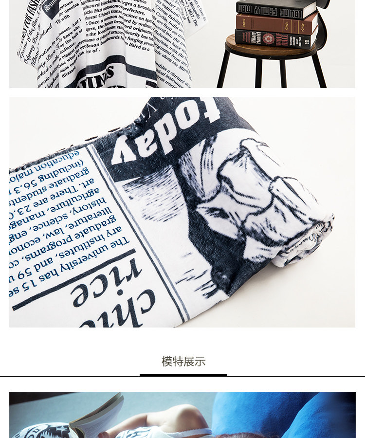 趨然(英文報紙)原創空調毛毯 法蘭絨午休被子英文報紙蓋毯