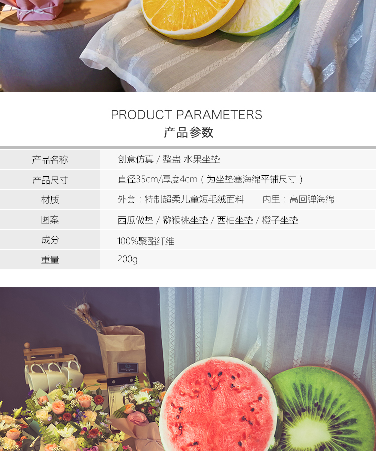 西瓜 青檸 獼猴桃 香橙 水果抱枕