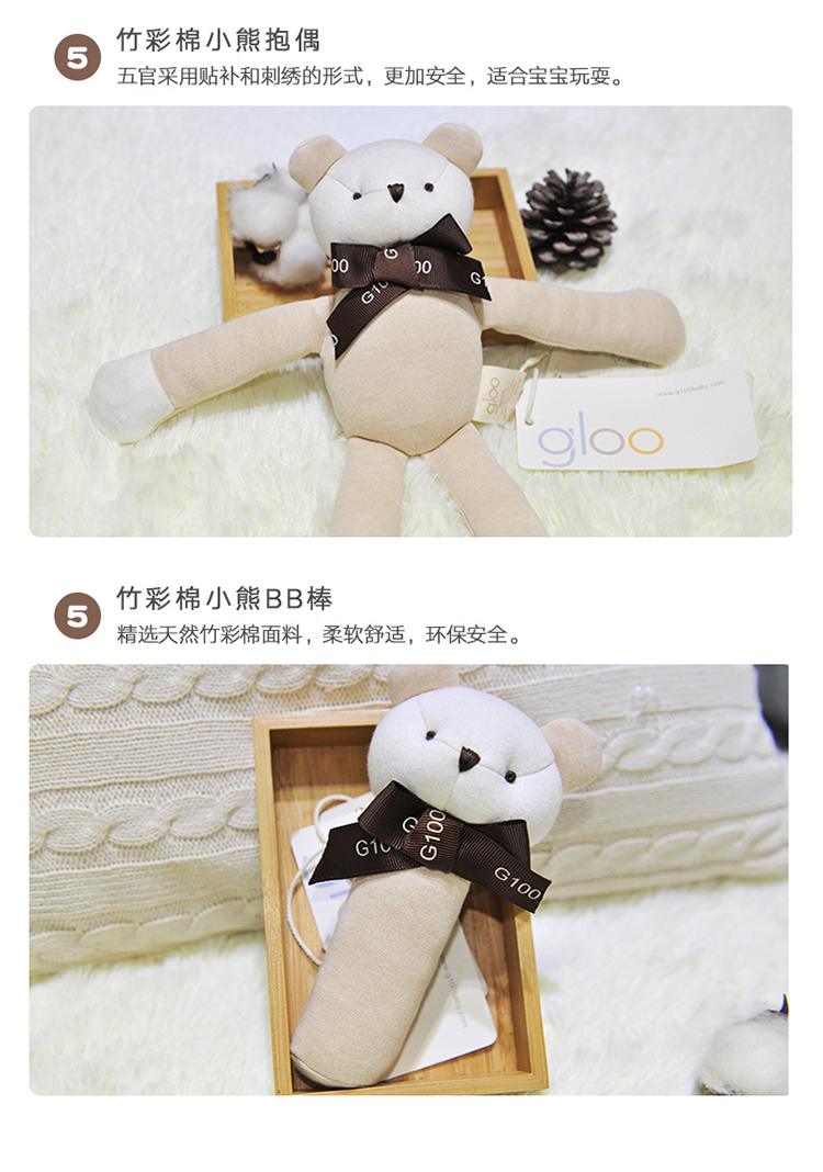 G100寄意百嬰兒禮盒有機彩棉新生兒禮盒春夏嬰幼兒藤編禮盒8件套 天然彩棉棕色