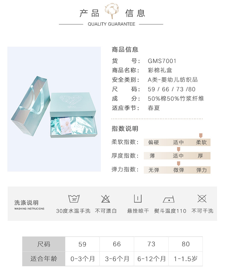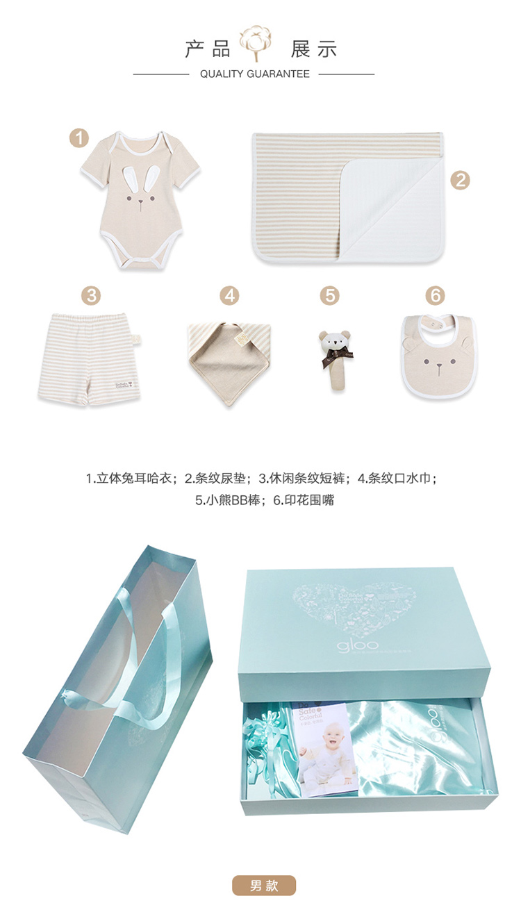 G100寄意百嬰兒彩棉衣服禮盒 心意新生兒寶寶衣服用品禮盒6件套 男寶淺藍(lán)色禮盒