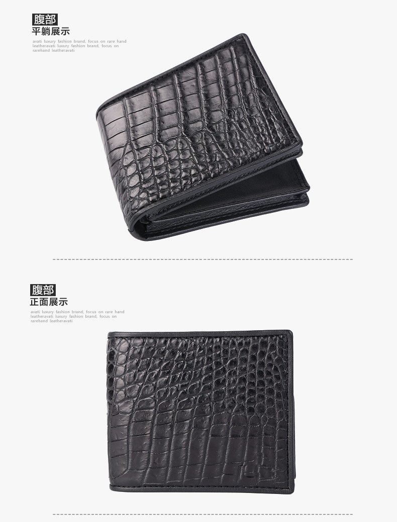 貨號:SI057規格:11.5cm寬x9.4cm高x2.7cm厚面料:鱷魚皮內襯:頭層牛皮結構:3個卡位、1個大鈔夾、1個票據位、1個相片位溫馨提示:尺寸均為手工測量,若有誤差,敬請諒解,一切以實物為準