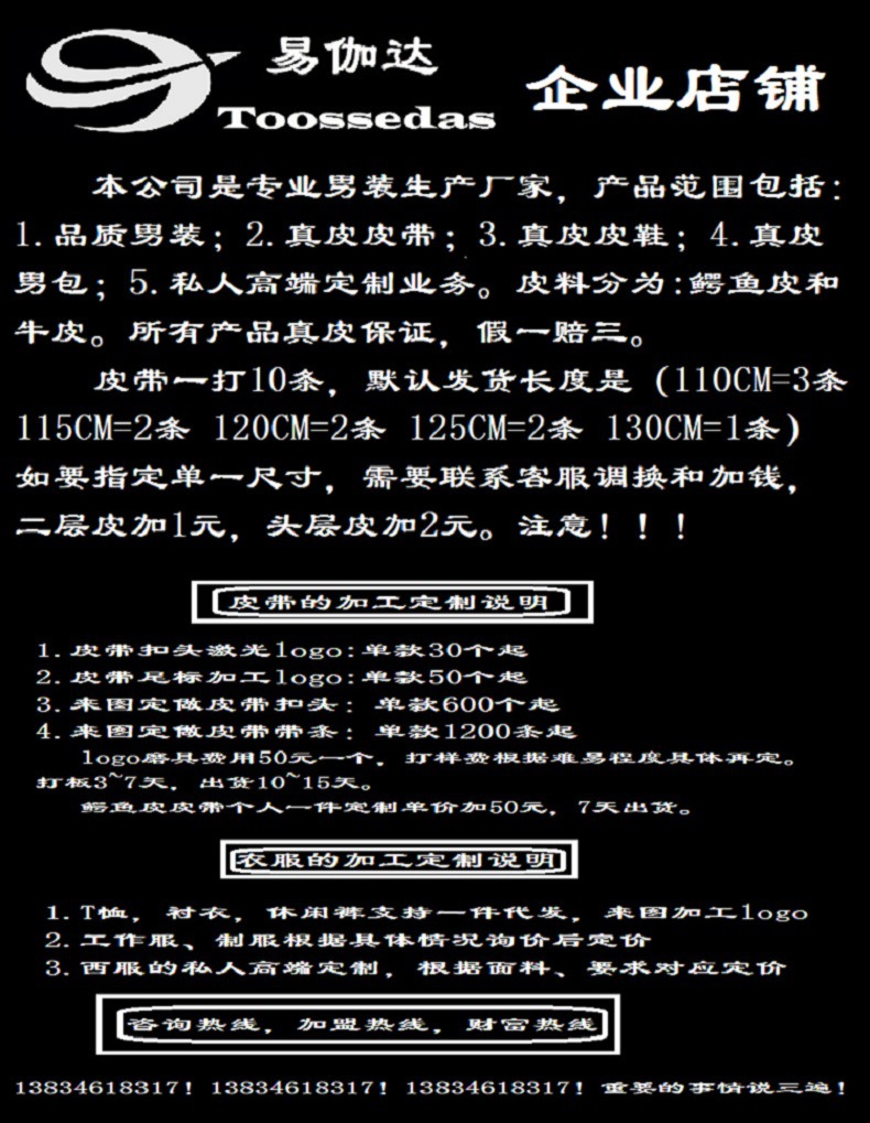 易伽達,專業的男人品牌,只做男士產品。真皮鱷魚皮材質保障,支持驗貨。60天質保,終身保修。