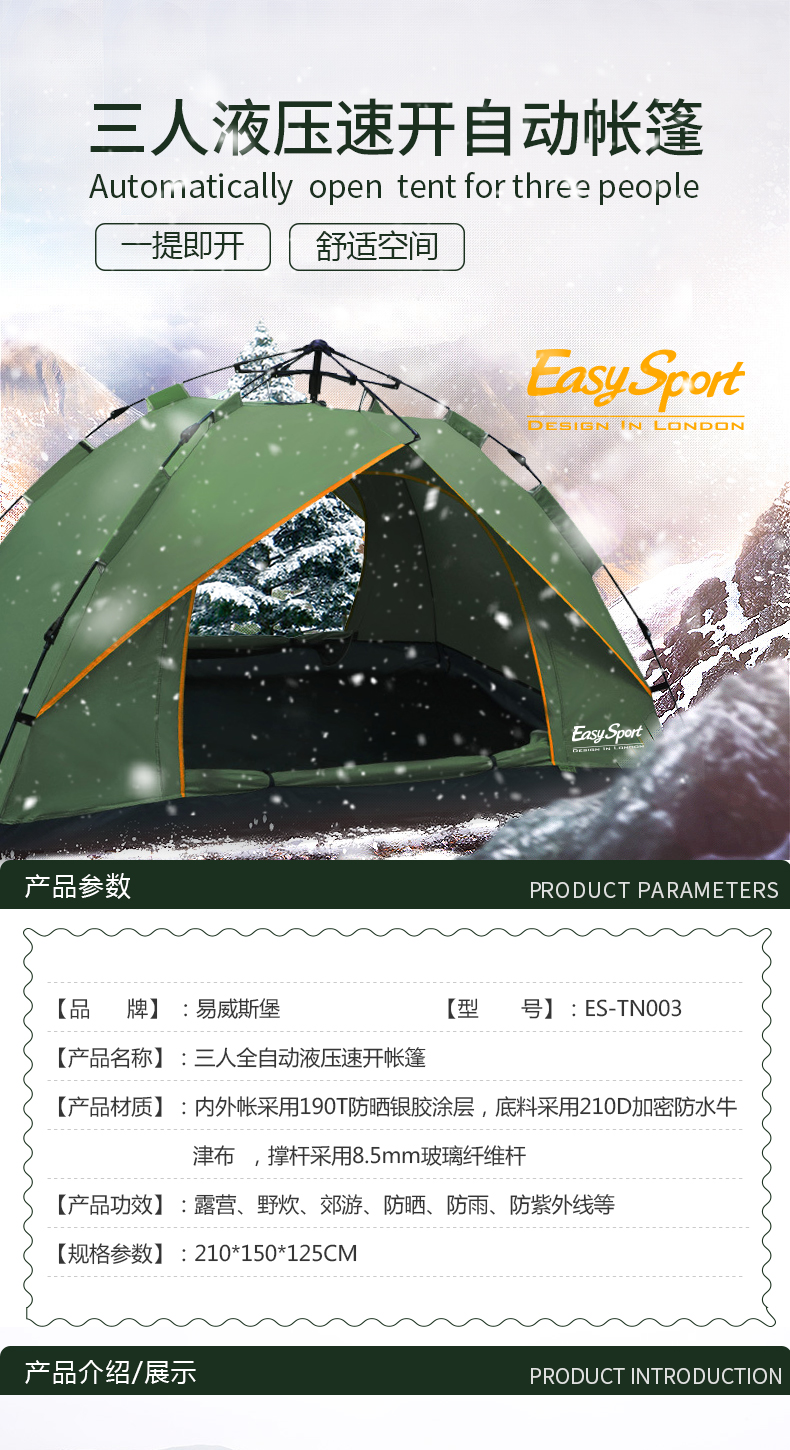 自動液壓帳篷,告別手動時代,輕松一提,3秒速開,一提開帳,一壓收帳!