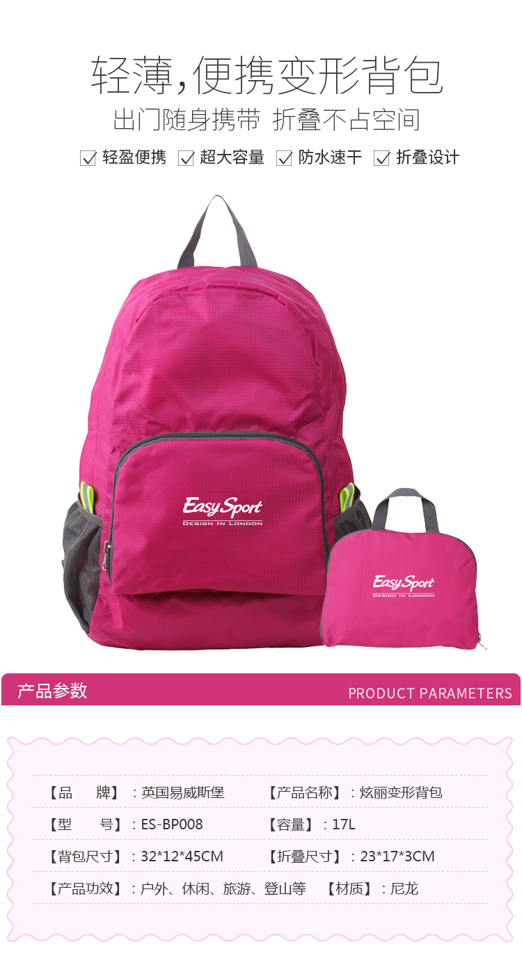 輕薄便攜變形背包,超大容量,防水速干。