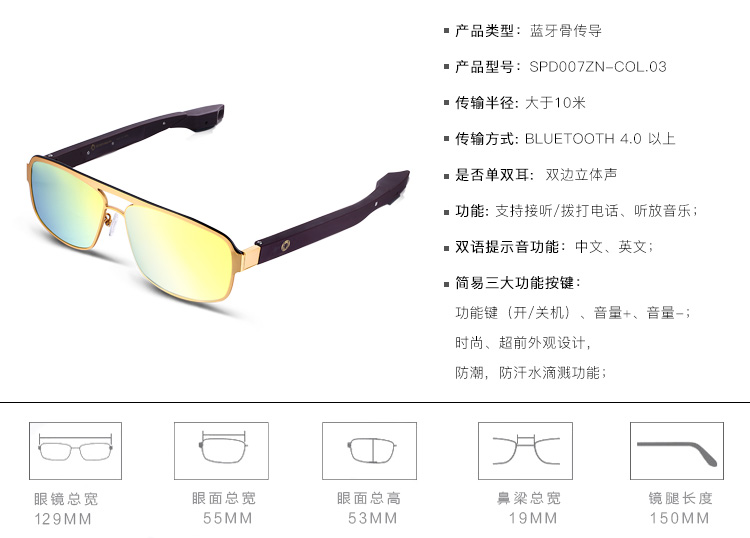 商品名稱:思派德 SPIDER智能眼鏡墨鏡藍牙骨傳導