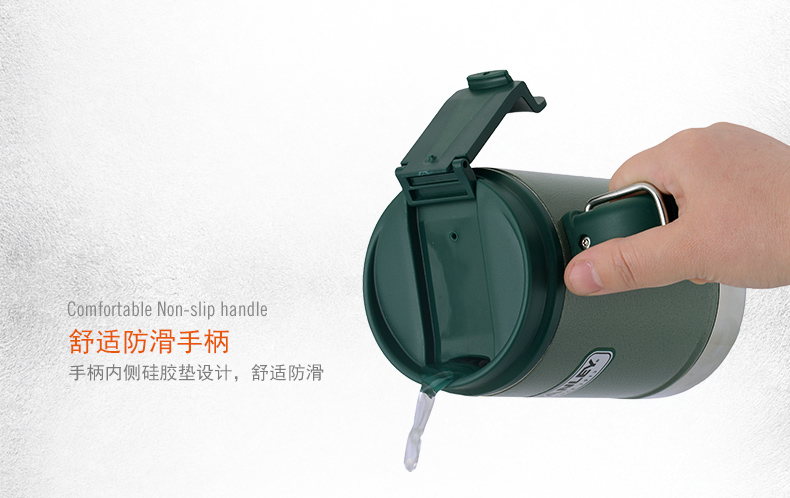 雙層不銹鋼 舒適防滑手柄 翻蓋即飲