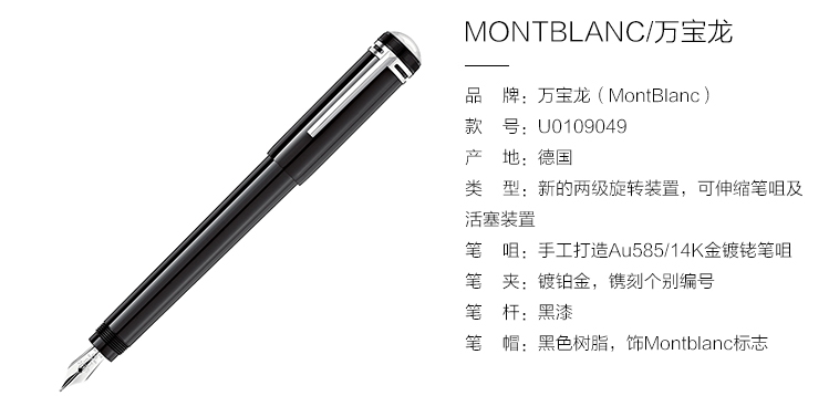 MontBlanc萬寶龍限量版1912傳承系列黑色樹脂伸縮鍍鉑金墨水筆109049