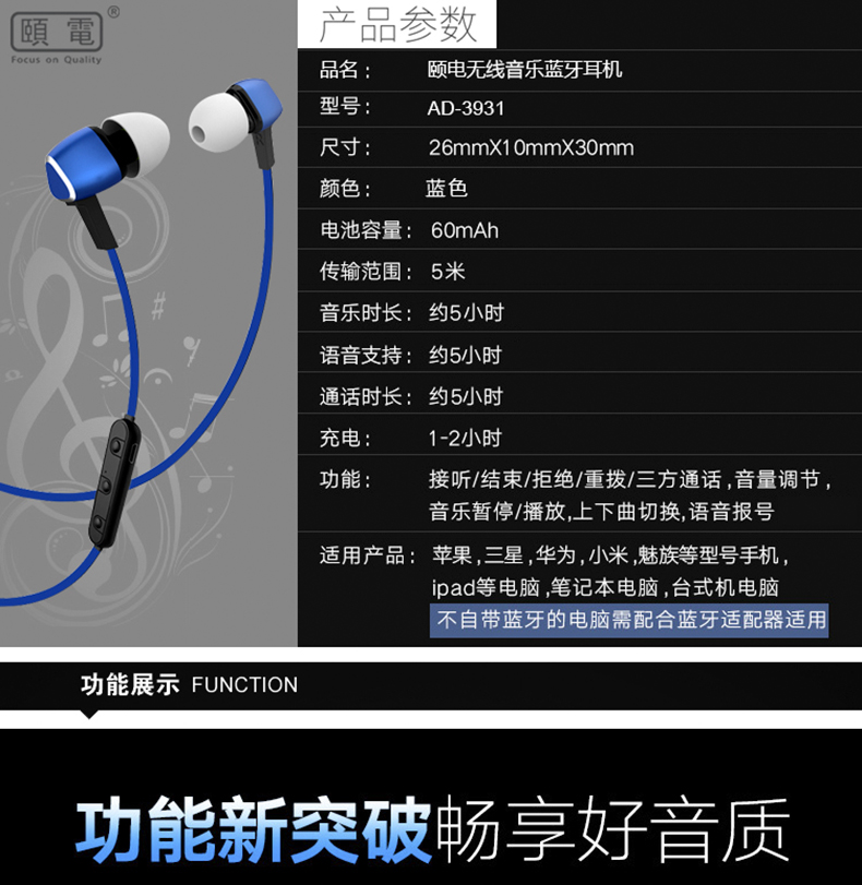 3、藍牙4.1版本,多媒體兼容,來電播報,清晰音質;