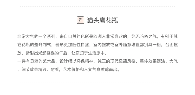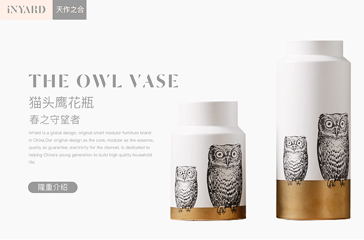 「InYard嚴(yán)選」陶瓷創(chuàng)意花瓶插花器客廳家居裝飾品擺件擺設(shè)貓頭鷹 舉報(bào) 極有家認(rèn)證[原創(chuàng)設(shè)計(jì)]:專屬設(shè)計(jì),限量生產(chǎn),只為你造 商家承諾:提供“材質(zhì)保真”服務(wù),如材質(zhì)與描述不符可獲賠200%