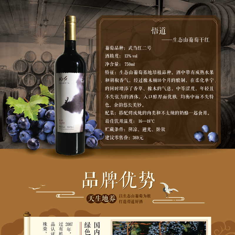 · 商品名稱:武當紅悟道(兩支+木盒) 武當紅生態山葡萄酒道系列悟道750ml*2木質禮盒