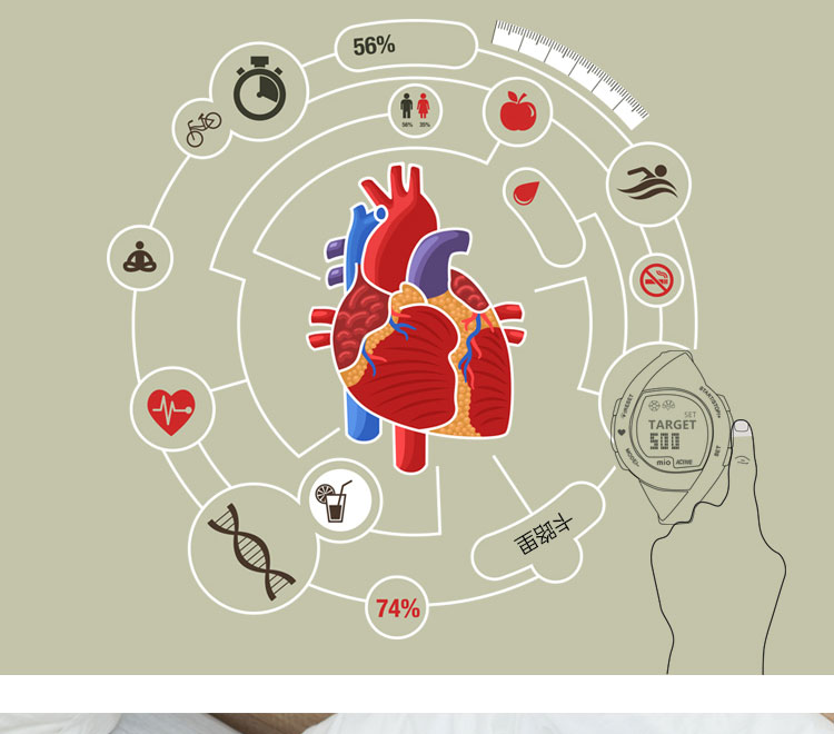 mio邁歐健步摯尊女款心率表跑步無胸帶女多功能計步傳感器卡路里腕帶運動手表