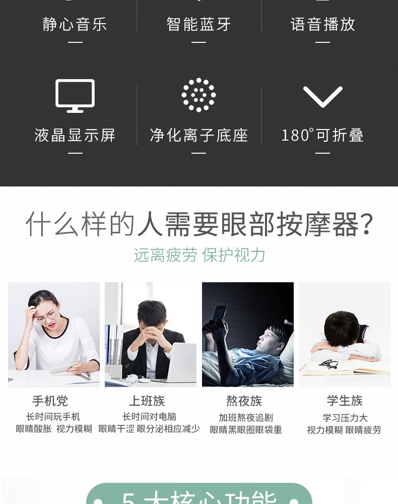 眼部按摩器護(hù)眼儀 眼保儀 熱敷氣壓按摩眼罩 舒緩眼疲勞 X1 黑色