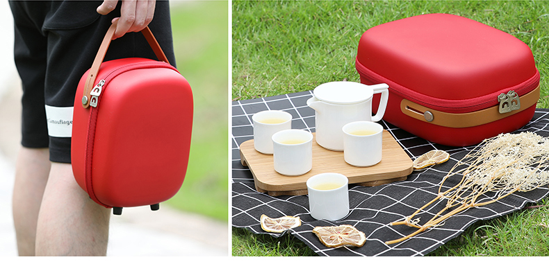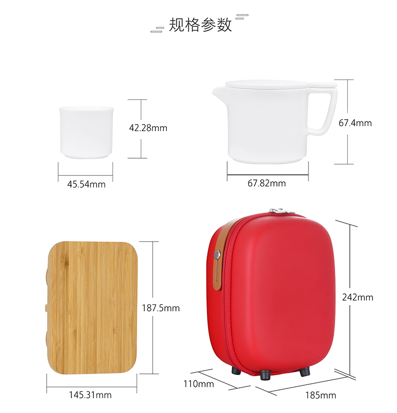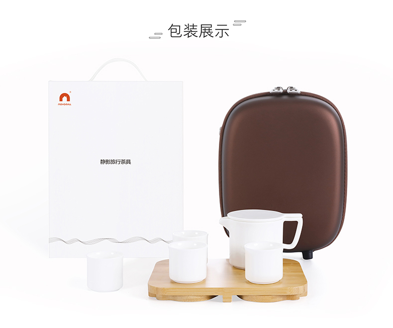 配置參數:彩盒X1, 便攜旅行包X1,隱形拓展茶盤X1, 陶瓷茶壺X1,陶瓷杯X4