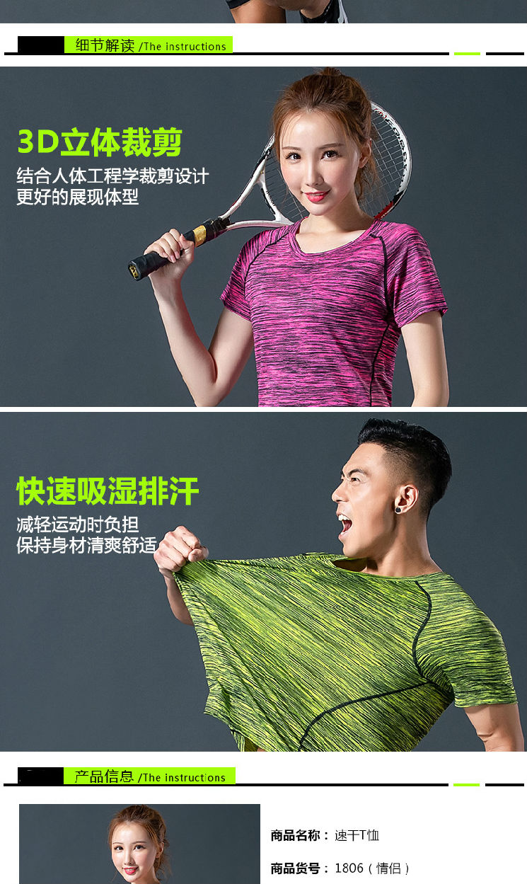 廠家直銷情侶速干T恤 夏季短袖運動圓領衫跑步運動健身時尚速干衣