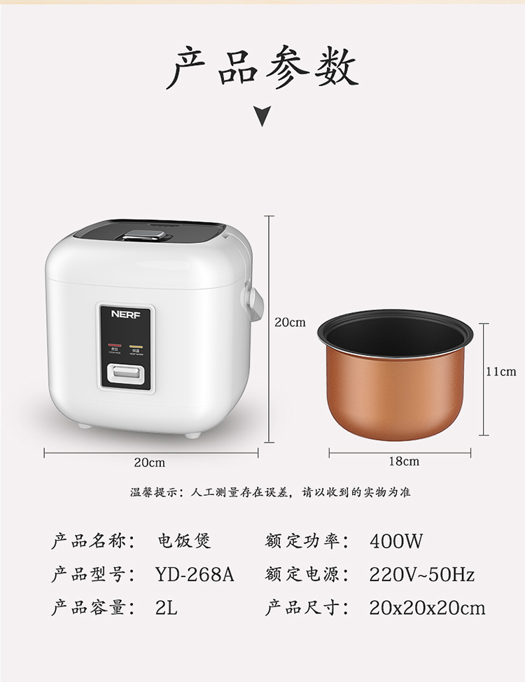 2L容量,小巧精致易收納,400W小巧功率宿舍不跳閘