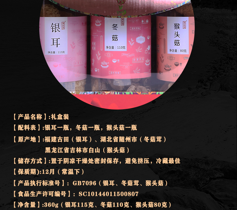 漢盅補 紅盒-三拼禮盒裝(冬菇110g、銀耳115g、猴頭菇80g)