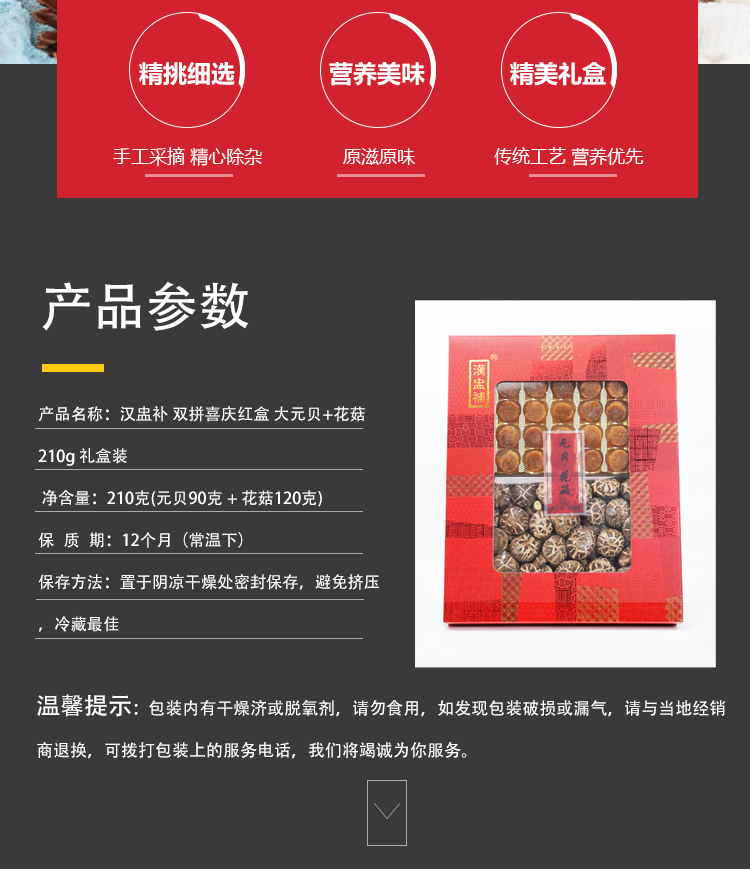 漢盅補 雙拼喜慶紅盒 大元貝+花菇 210g 禮盒裝