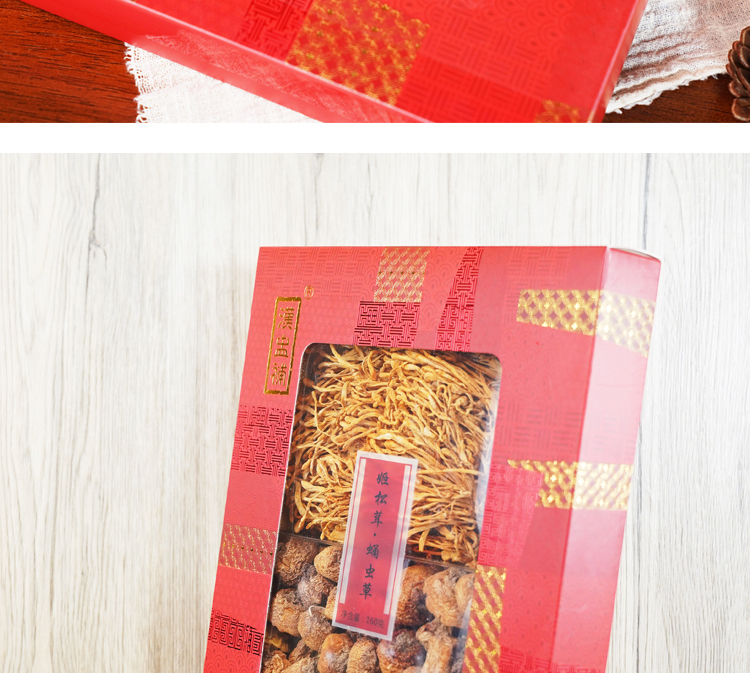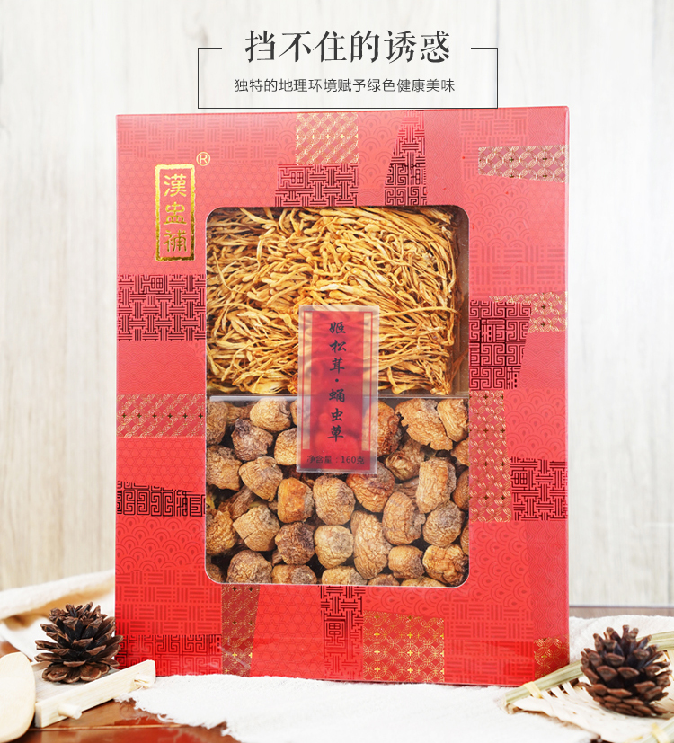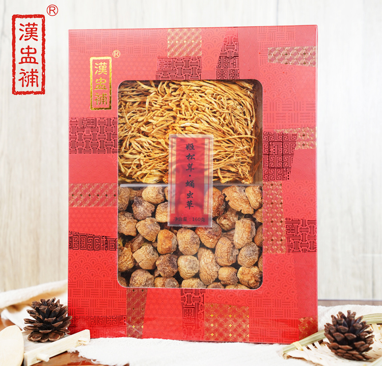漢盅補 雙拼喜慶紅盒 蟲草花+姬松茸 160g 禮盒裝