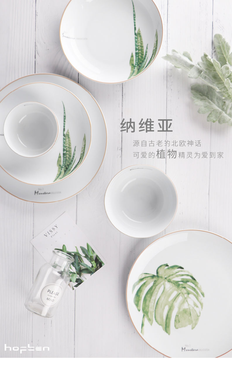 碗碟套裝 北歐風家用陶瓷餐具組合 植物簡約碗盤高檔中式送禮瓷碗
