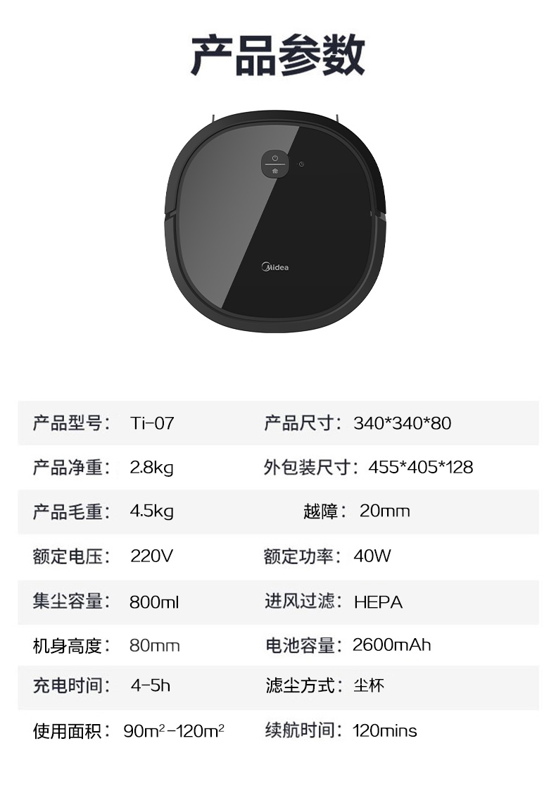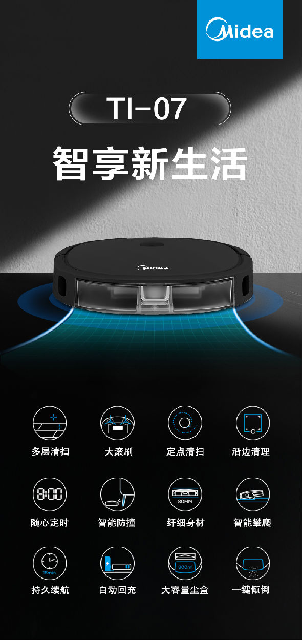 美的 Midea 美的(Midea)掃地機器人 家用 Ti-07 黑色