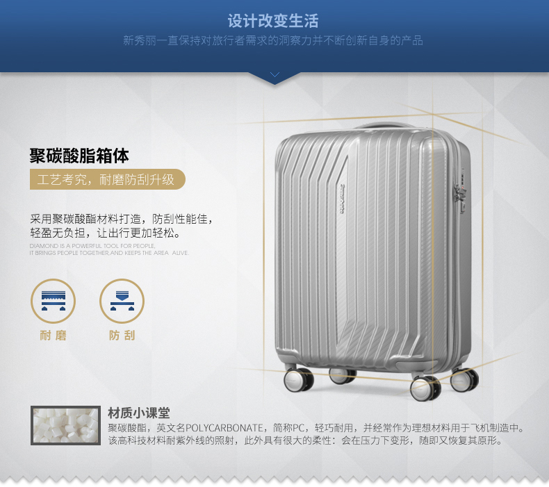 100%PC防刮亞光材質,搭配亮麗動感線條,中間醒目高檔