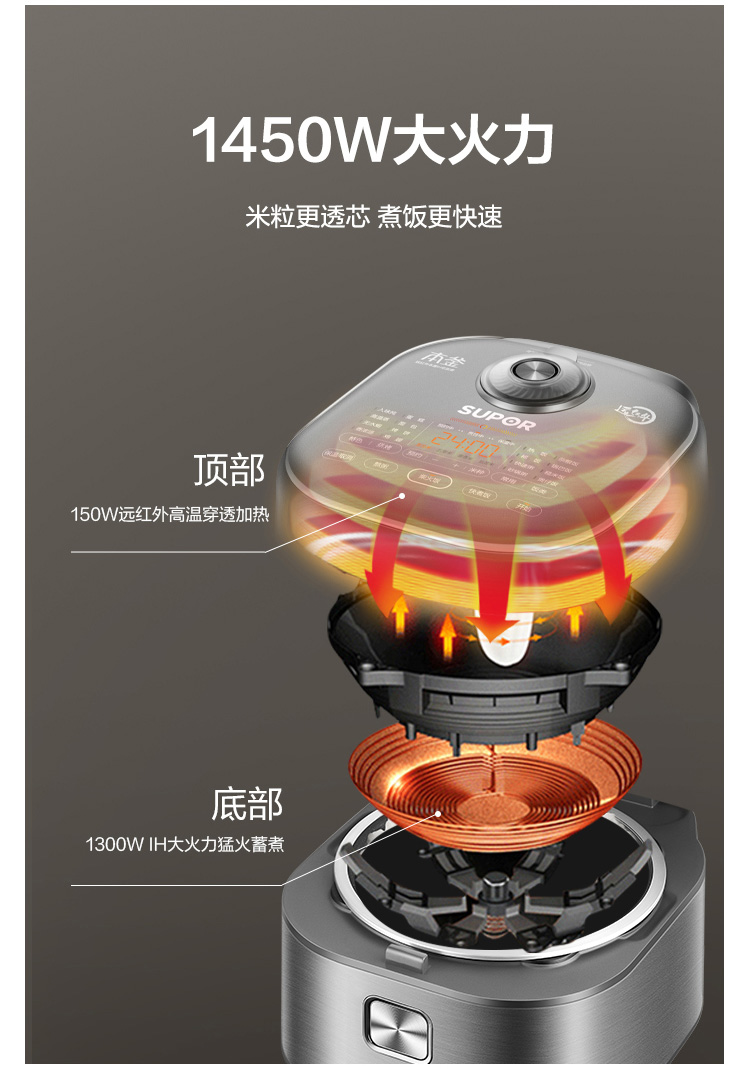蘇泊爾(SUPOR) 電飯煲 4L 遠紅外本釜IH電飯鍋 多功能家用智能菜單 純觸控全面屏 深空灰色 SF40HC86
