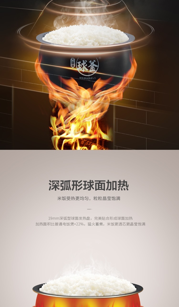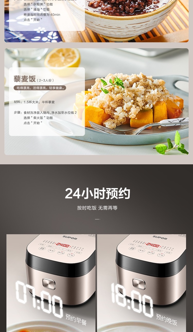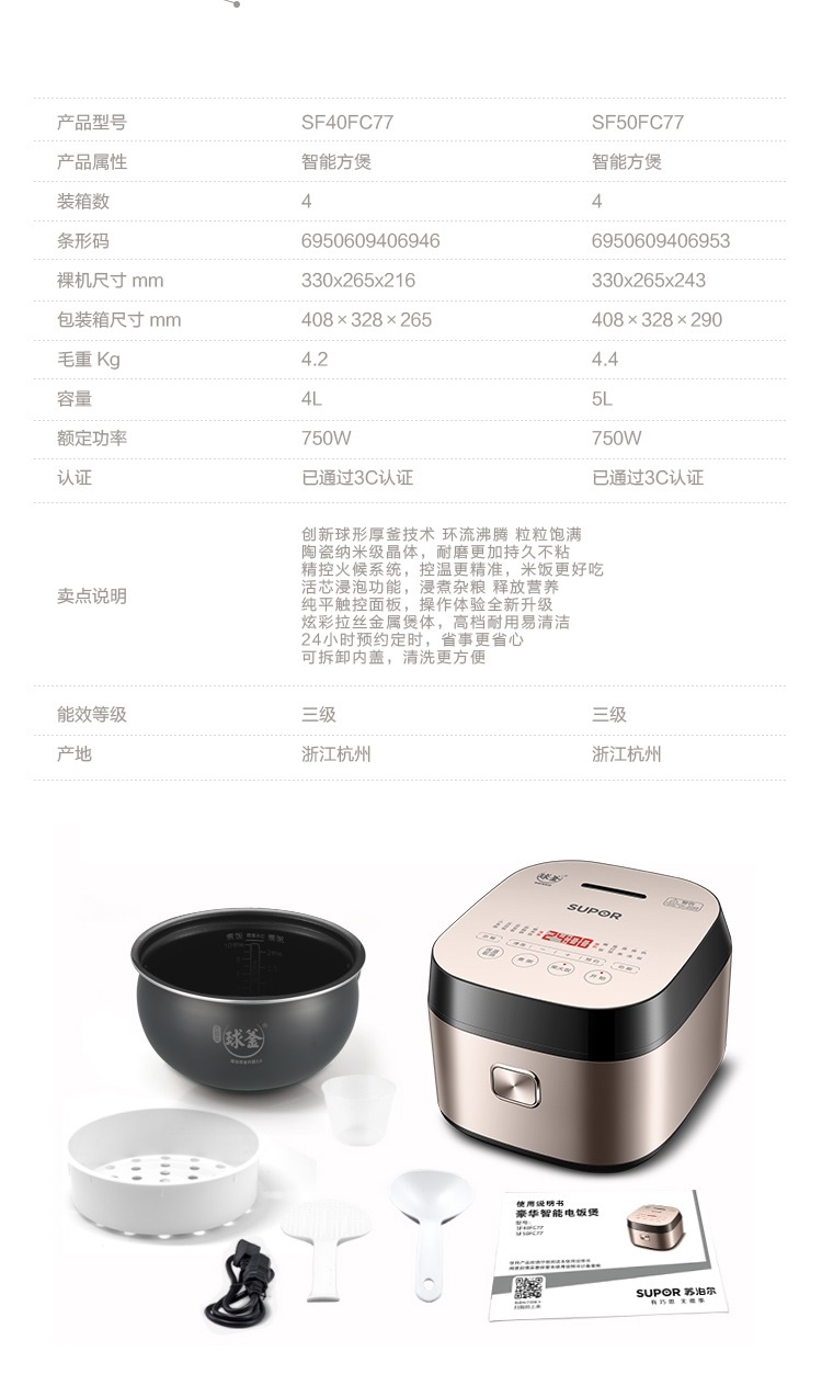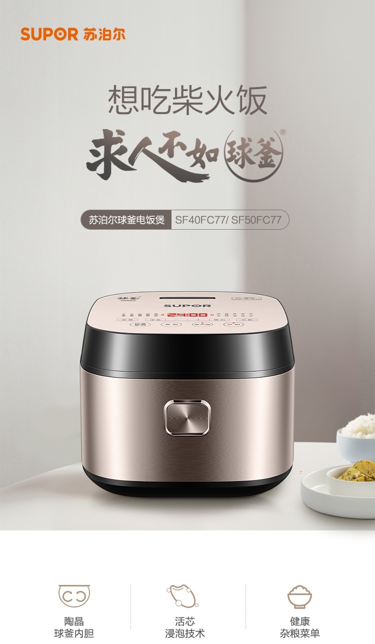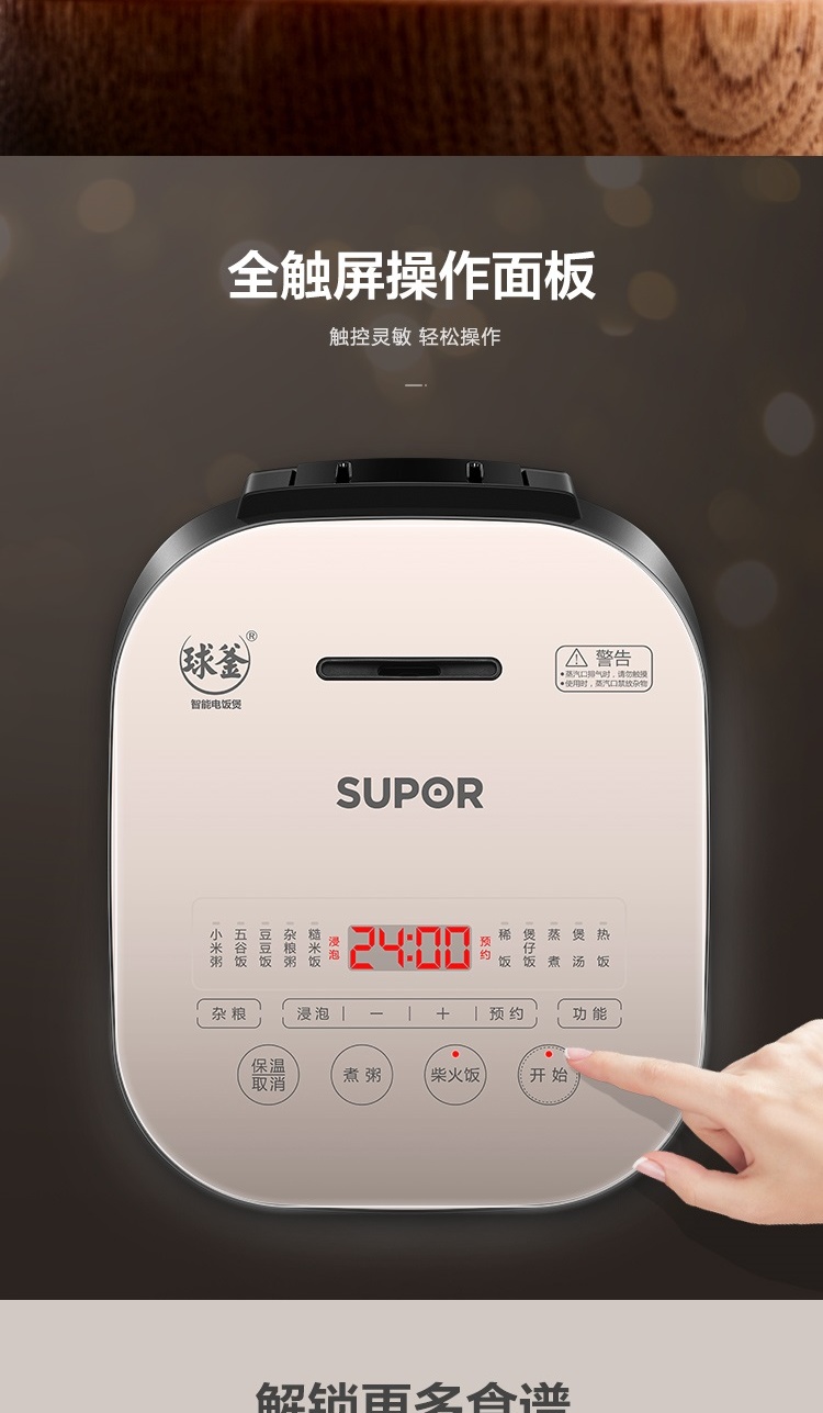 蘇泊爾(SUPOR) 電飯煲電飯鍋 家用4L球釜多功能觸控煮飯鍋一鍵柴火飯健康雜糧飯4-6人SF40FC77