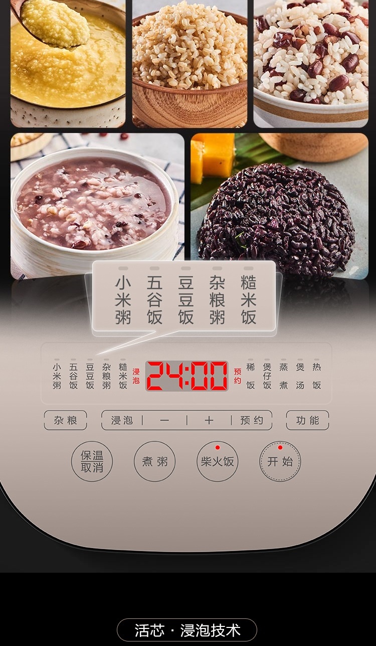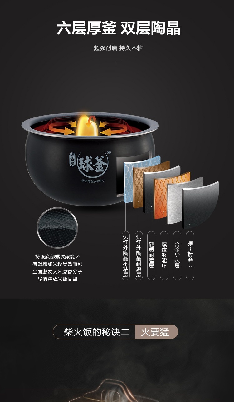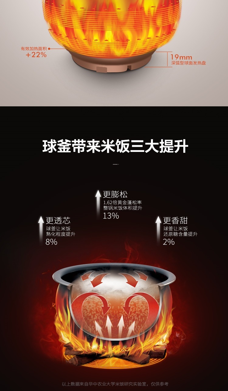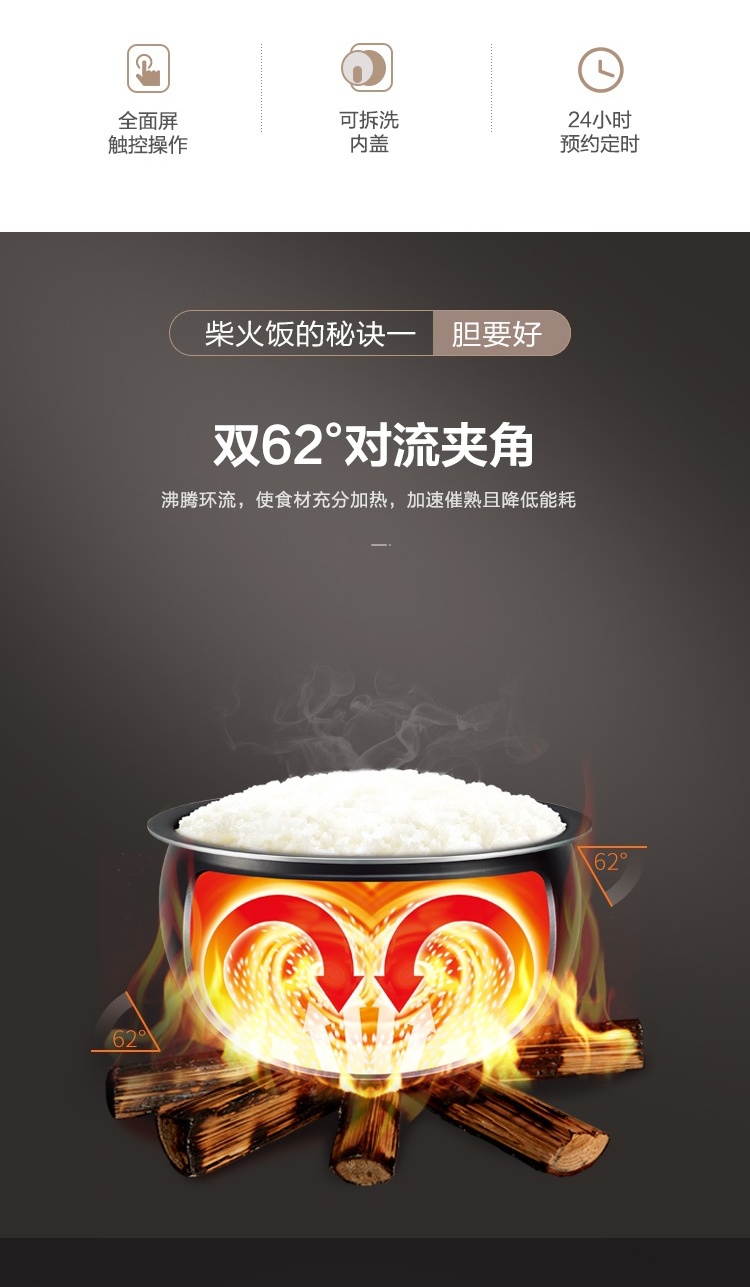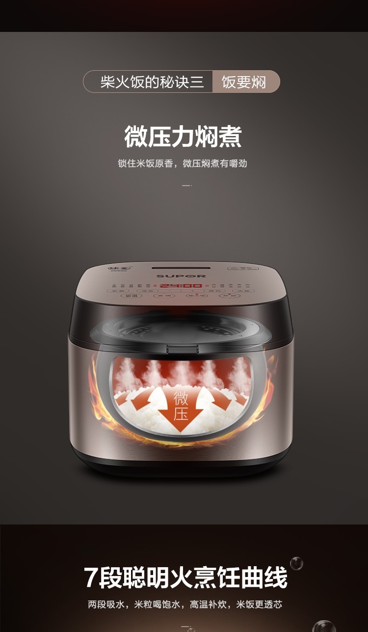蘇泊爾(SUPOR) 電飯煲電飯鍋 家用4L球釜多功能觸控煮飯鍋一鍵柴火飯健康雜糧飯4-6人SF40FC77