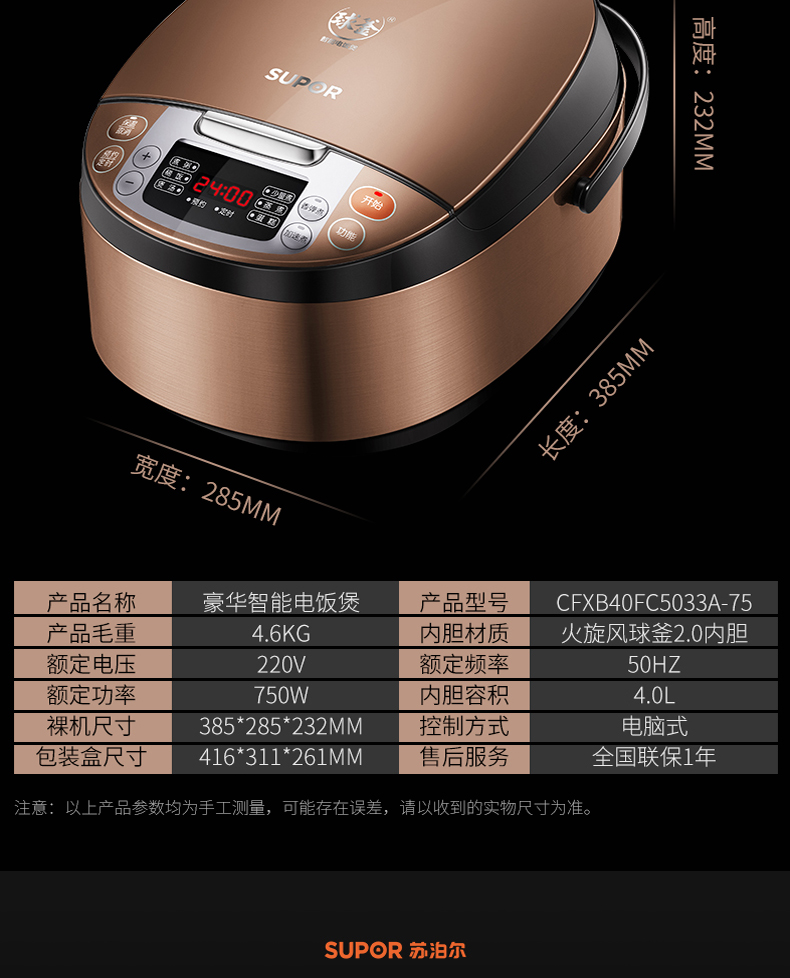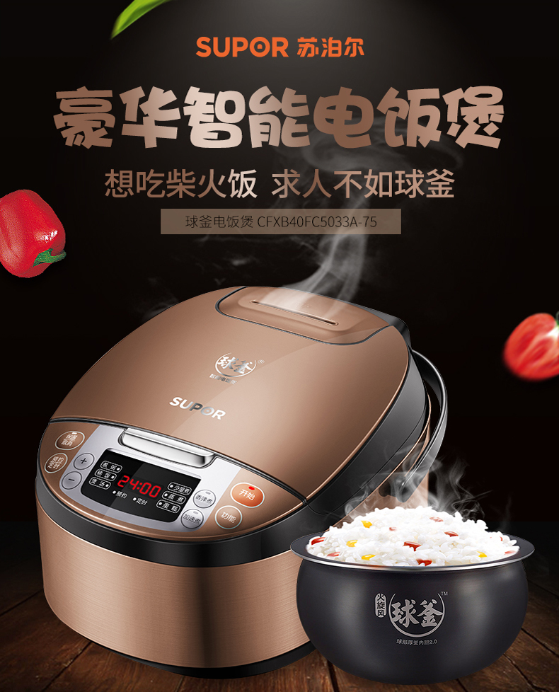 蘇泊爾(SUPOR) CFXB40FC5033A-75 24小時預約電飯煲 創新熱對流鍋體 香味四溢 微壓烹飪技術電飯鍋