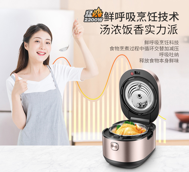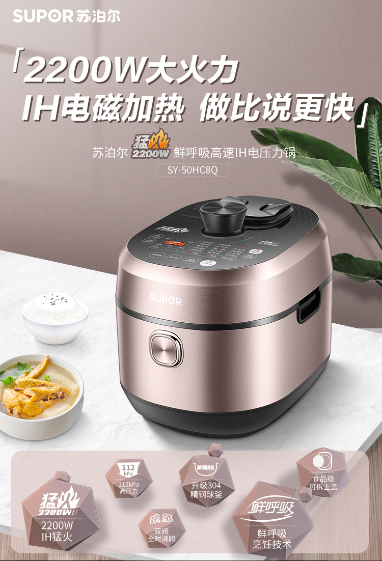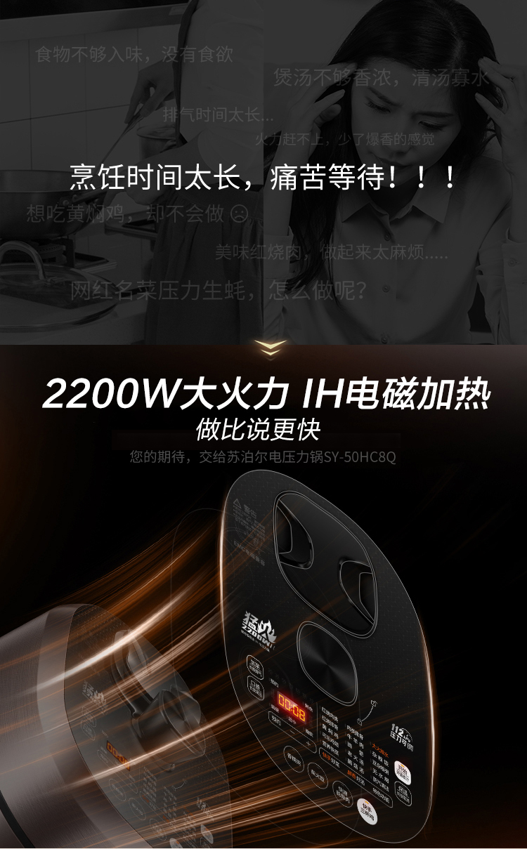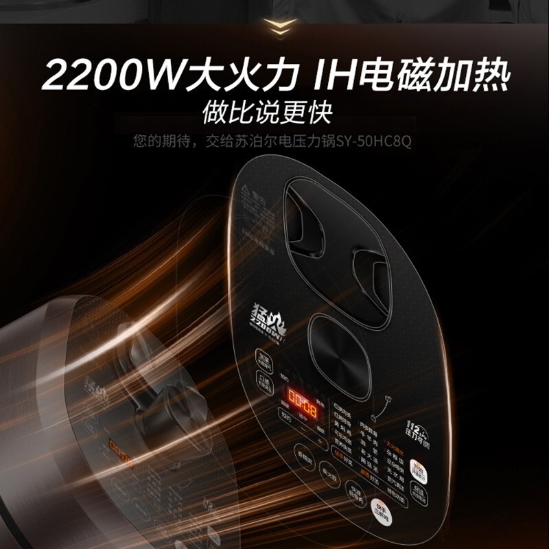 蘇泊爾(SUPOR)電壓力鍋5L大容量家用智能鮮呼吸IH電磁加熱球釜雙內膽點高壓鍋112kpa SY-50HC8Q