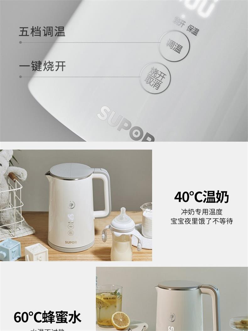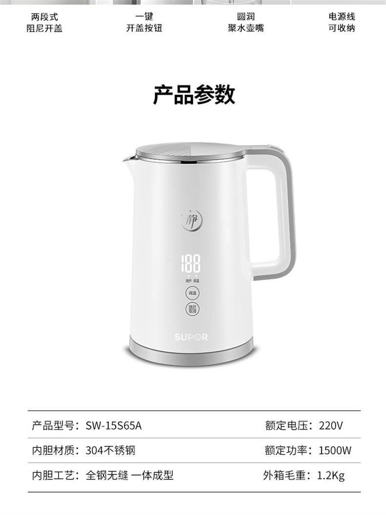 蘇泊爾(SUPOR)電水壺 SW-15S65A 1500W 輕音煮水 觸控調溫 雙層防燙
