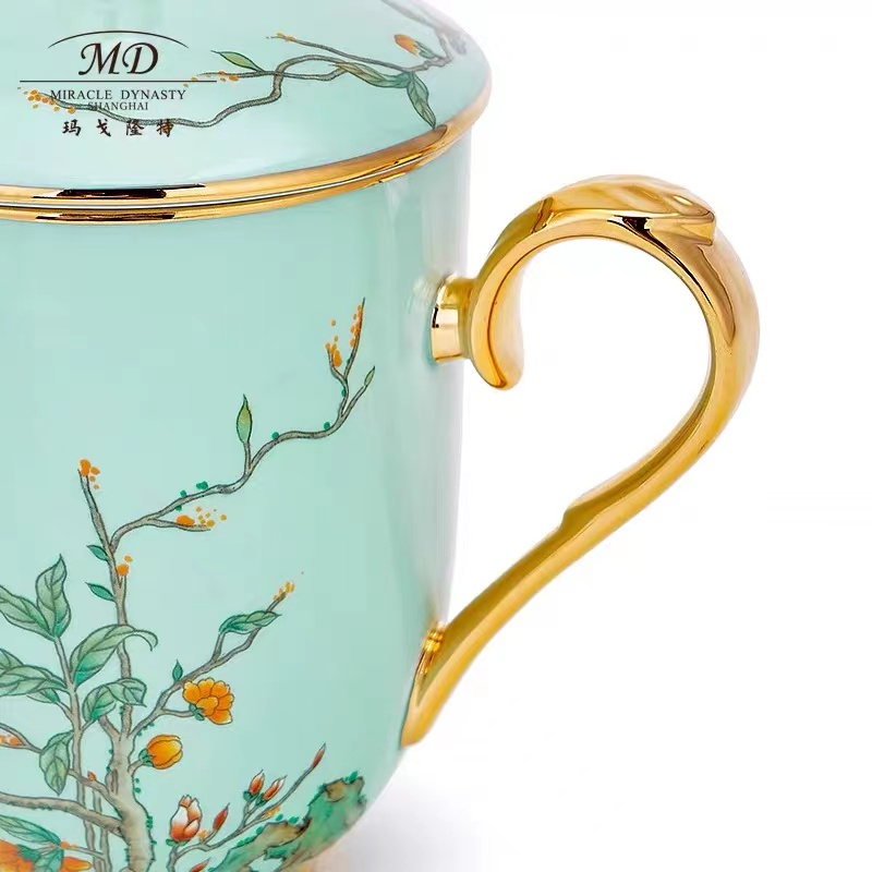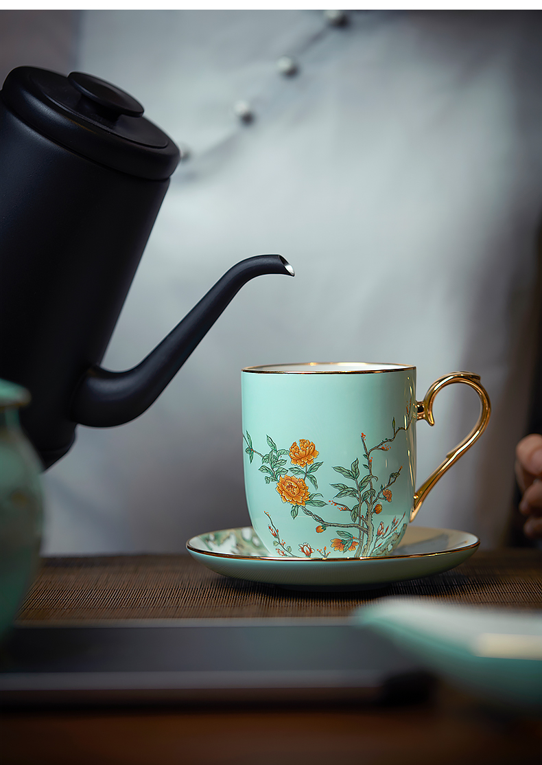 翰樂茶具半自動(dòng)時(shí)來運(yùn)轉(zhuǎn)泡茶神器描金高端輕奢HL-SMSH石墨生花9件套