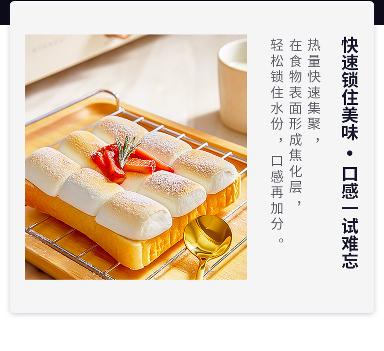 推薦理由:1、懷舊顏值,12L體積小,不占廚房空間 2、雙旋鈕設(shè)計(jì)、100-230°溫度隨心控制,0-30分鐘自由選擇 3、可視化玻璃門,無(wú)需開蓋即可看到食物烘焙狀態(tài)過程 4、S 型雙管立體烘烤,快速均勻發(fā)熱 5、可烤多種食物,曲奇,蛋撻,雞翅,小蛋糕等 6、3段停頓門,防止熱氣瞬間噴出,防燙作用