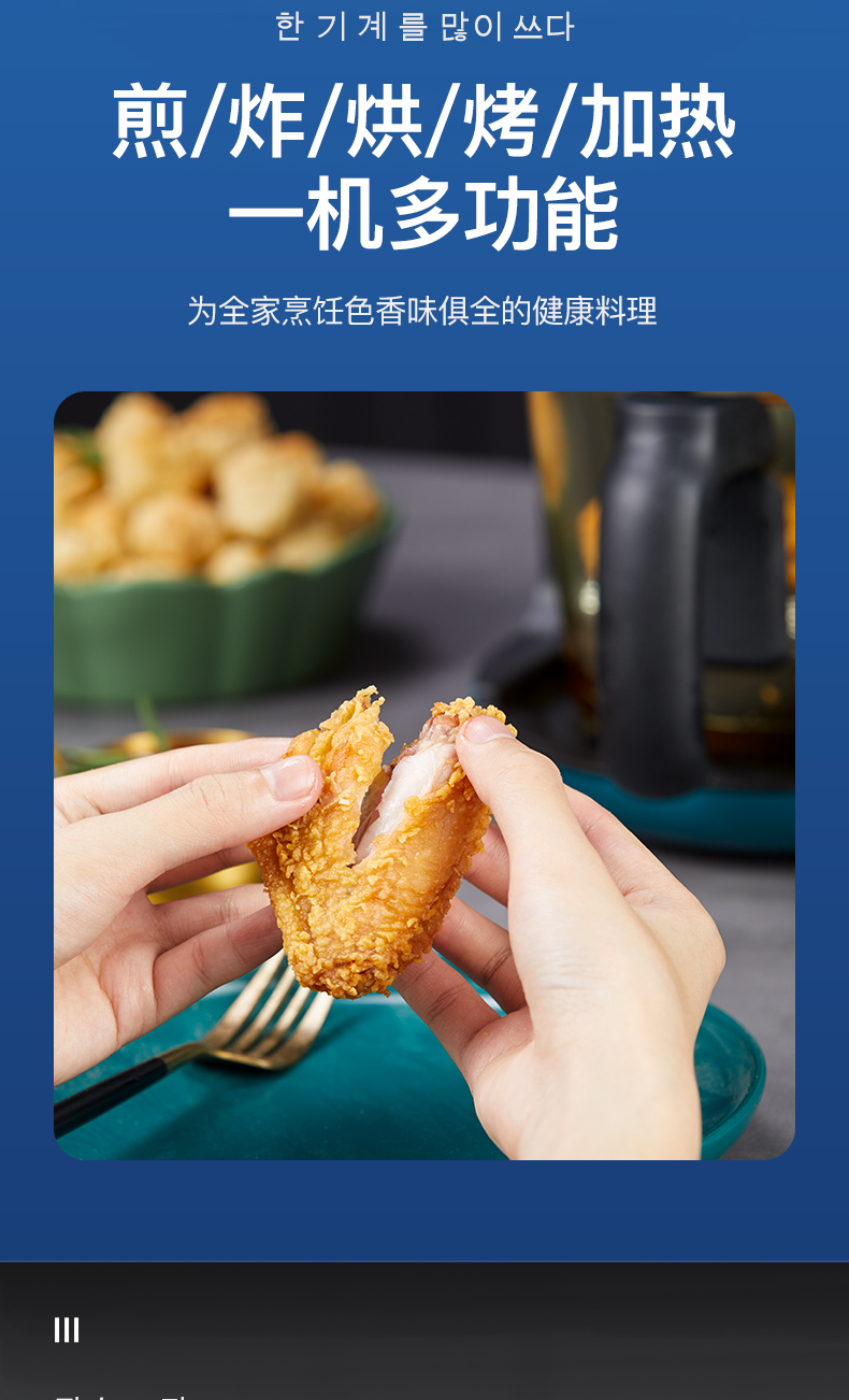 1、一機多用,可煎,烤,烘,炸 2、玻璃內膽可旋轉,全程可視烹飪過程,隨時調整時間,增加調料 3、觸摸按鍵,方便快捷,過油濾網過濾多余油脂 4、安全防燙把手,方便抽拿 5、無需用油,360°熱旋風循環加熱食物,全面覆蓋,受熱均勻 6、外觀迷你精致,不占空間,便攜使用,可取代干果機,烘烤機,烘焙機,煎鍋,烤箱 7、底部防滑腳墊,摩擦力增強,不易滑倒