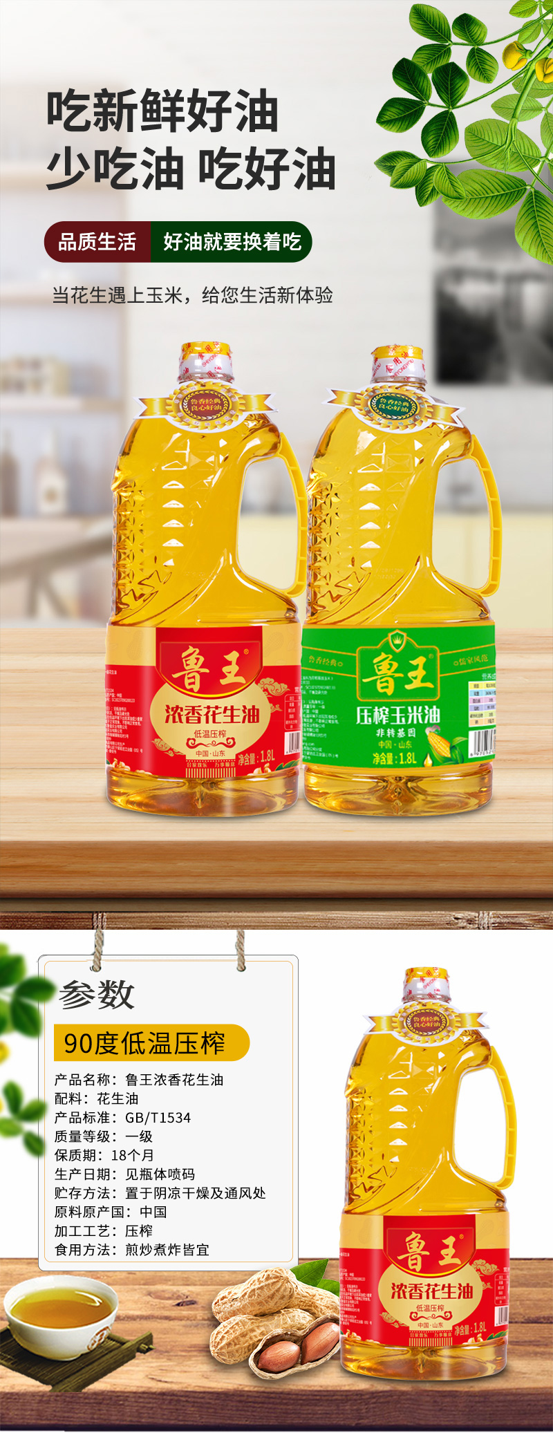 魯王濃香花生油1.8L+綠色健康玉米油1.8L