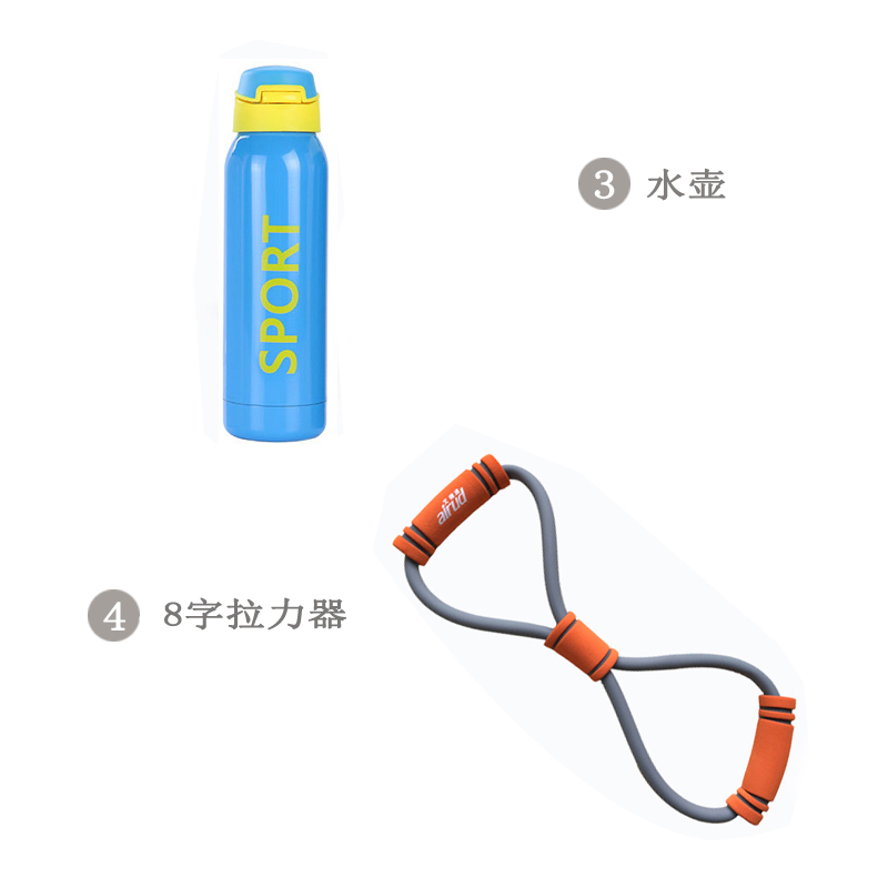 產(chǎn)品說明:跳繩1條、8字拉力器1條、護(hù)腕一對(duì),頭帶1條、杯子一個(gè)、防水包一個(gè)產(chǎn)品介紹:包裝采用牛津布可多次反復(fù)使用方便攜帶,全套的簡(jiǎn)易健身器材,為您的生活增添更多的快樂!
