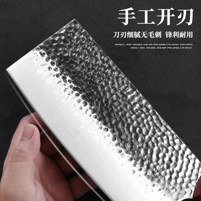 持久鋒利、耐用易磨,高硬度,鍛打漸薄刃口,鉚釘加固手柄更加牢固,用途:切片、切菜、切肉、砍骨頭等