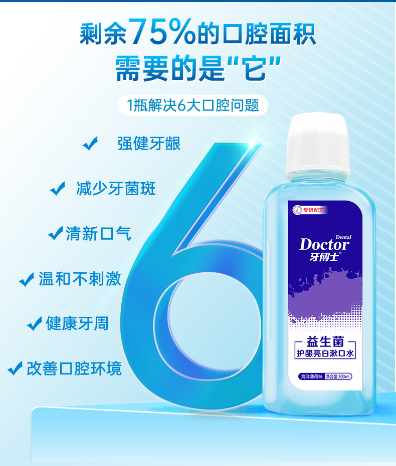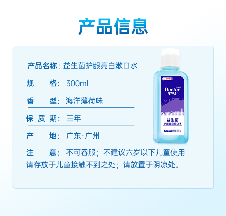 牙博士益生菌護(hù)齦亮白漱口水300ml